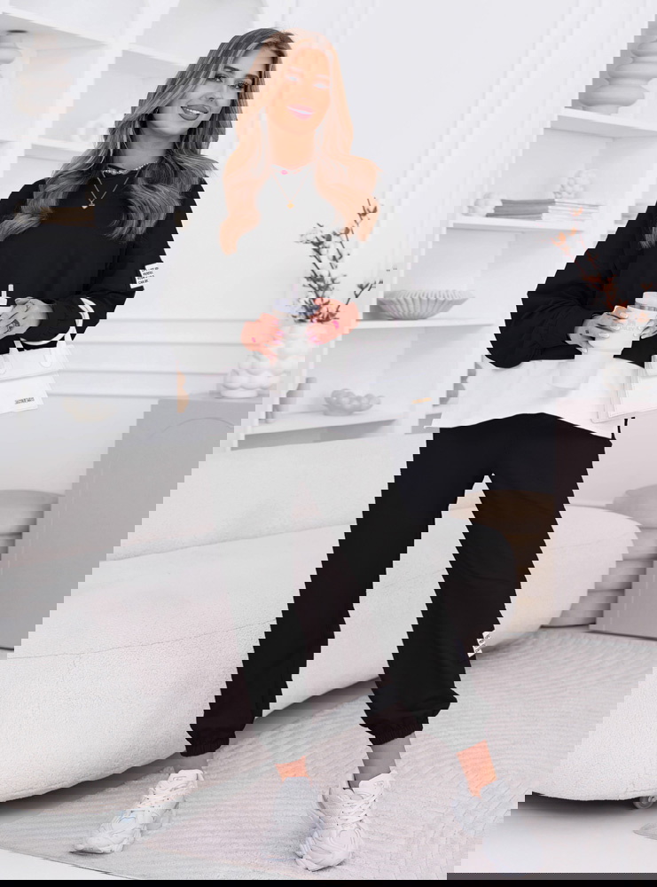 Czarny komplet dresowy bluza z kapturem i spodnie Madaleine