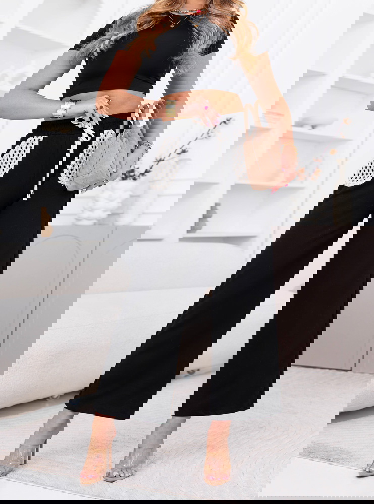 Czarne szerokie spodnie z kieszeniami Casadee -