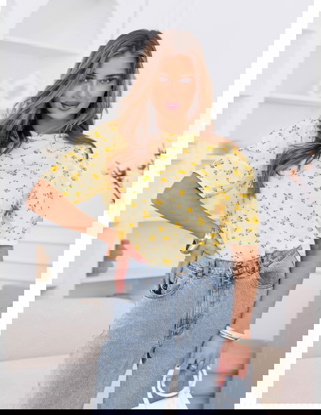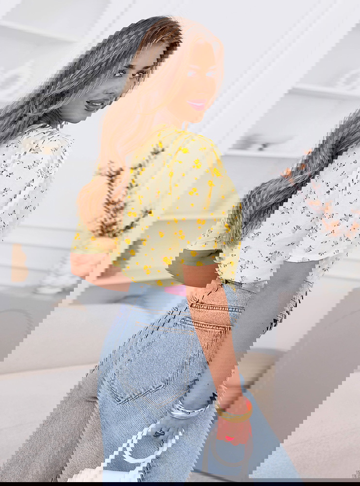 Żółta bluzka w kwiatowy wzór z bufiastymi rękawami Fioravireliana