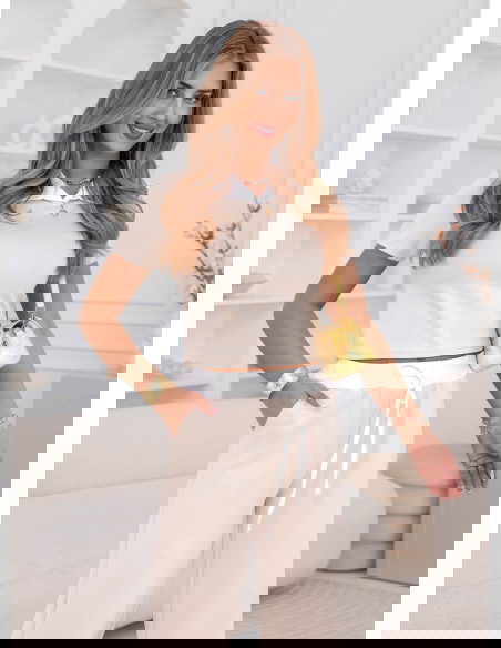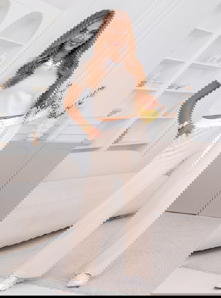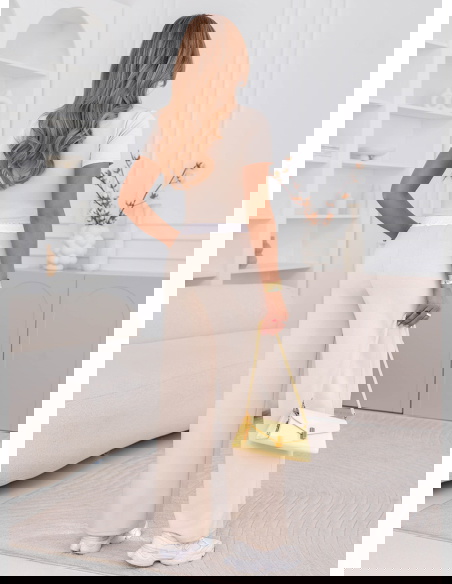 Jasnobeżowy komplet bluzka i szerokie spodnie z kieszeniami Amarila to spokojna, ponadczasowa propozycja, która zawsze wygląda dobrze. Jasnobeżowy kolor daje efekt lekkości i świetnie wpisuje się w codzienne stylizacje. Krótka bluzka z kołnierzykiem dodaje całości subtelnej elegancji i wyróżnia komplet na tle klasycznych zestawów. Spodnie z szerokimi nogawkami układają się miękko i zapewniają pełną swobodę ruchów. Elastyczny pas z wiązaniem pozwala łatwo dopasować fason i podkreślić talię. Kieszenie sprawiają, że komplet jest jeszcze bardziej praktyczny na co dzień. Całość tworzy spójny, dopracowany look, który nie wymaga kombinowania. To idealna opcja, kiedy chcesz wyglądać dobrze i czuć się komfortowo.