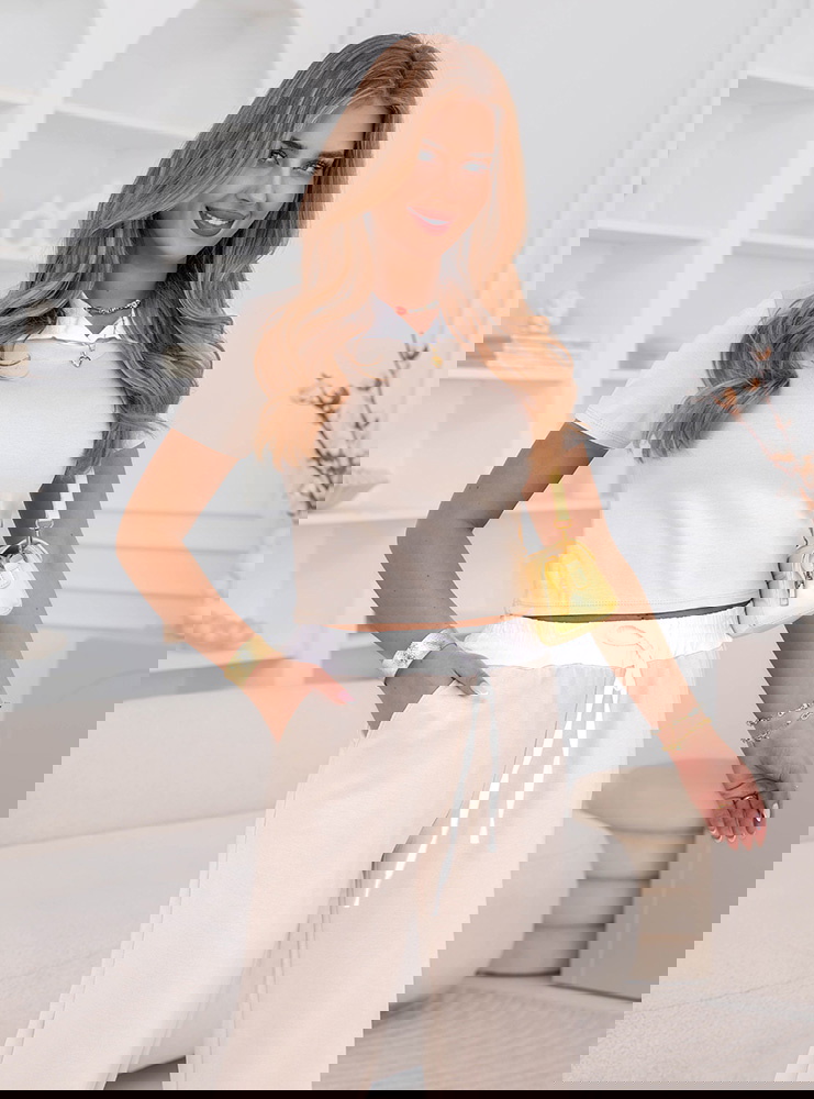 Ten zestaw możesz nosić razem albo rozdzielić i tworzyć nowe połączenia. Bluzka pasuje do jeansów czy spódnicy, a spodnie świetnie wyglądają z prostym topem lub koszulą. Dzięki temu jeden komplet daje kilka różnych stylizacji.