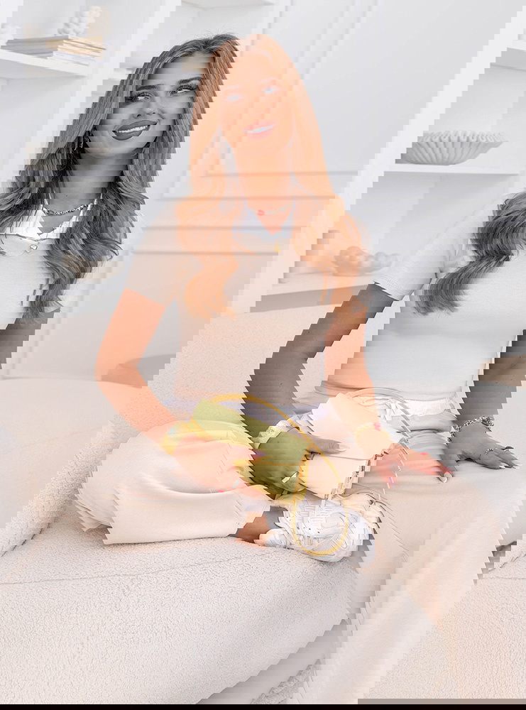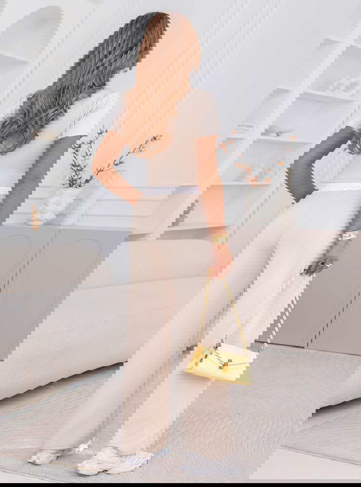 Na luzie – z jasnymi sneakersami i dużą torbą.
