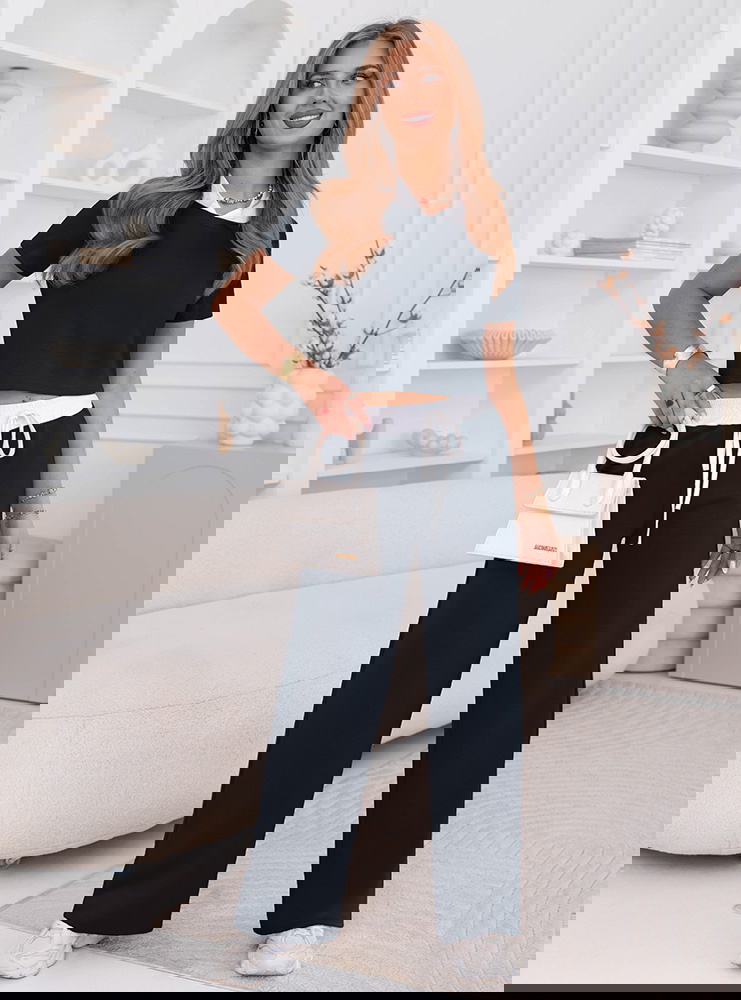 To komplet, który łączy klasyczny kolor z wygodnym fasonem i sprawdza się w wielu codziennych stylizacjach.