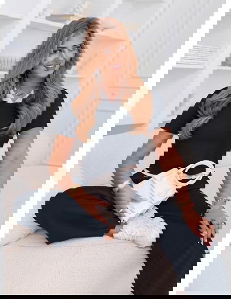 Bardziej kobieco – z sandałkami i biżuterią.