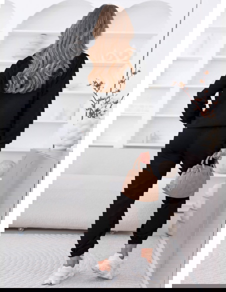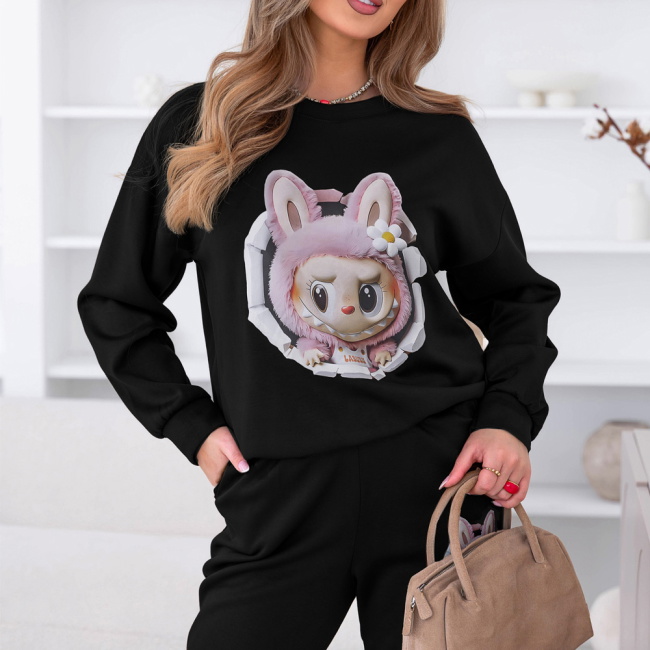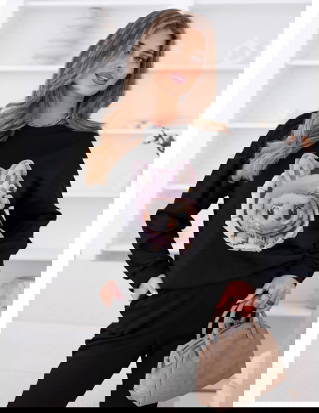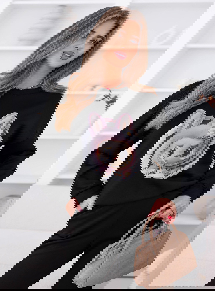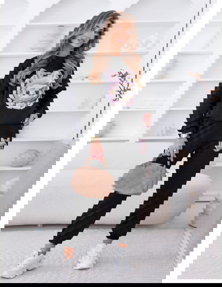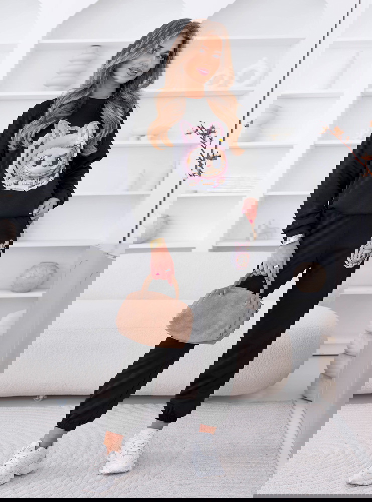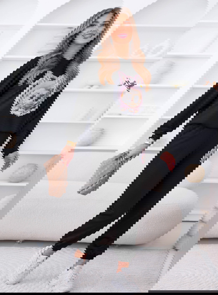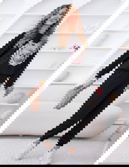 Czarny komplet dresowy z ozdobnym nadrukiem Elienor
