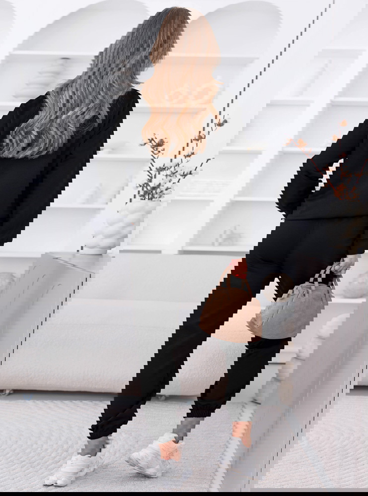 Czarny komplet dresowy z ozdobnym nadrukiem Elienor to klasyka w wygodnym, codziennym wydaniu, ale z wyraźnym akcentem, który robi całą robotę. Czarny kolor sprawia, że komplet jest uniwersalny i łatwy do stylizowania, a jednocześnie zawsze wygląda dobrze. Luźniejsza bluza daje swobodę i dobrze układa się na sylwetce, dzięki czemu nosi się ją naprawdę komfortowo. Ozdobny nadruk dodaje charakteru i wyróżnia całość na tle basicowych dresów. Spodnie z elastycznym pasem dopasowują się do figury i zapewniają wygodę przez cały dzień. Ściągacze przy nogawkach podkreślają sportowy styl i nadają całości lekkości. To komplet idealny na dni, kiedy stawiasz na luz, ale nadal chcesz wyglądać dobrze. Sprawdzi się zarówno na szybkie wyjście, jak i na spokojny dzień.