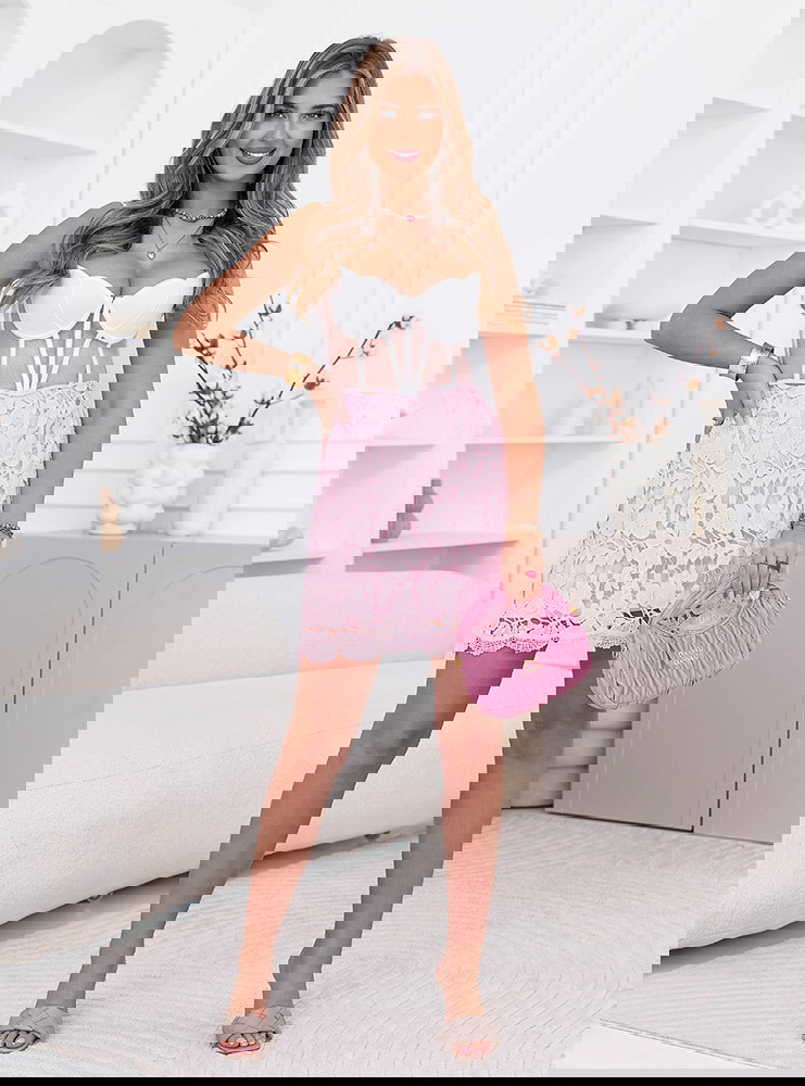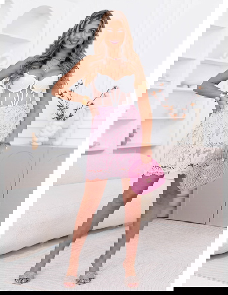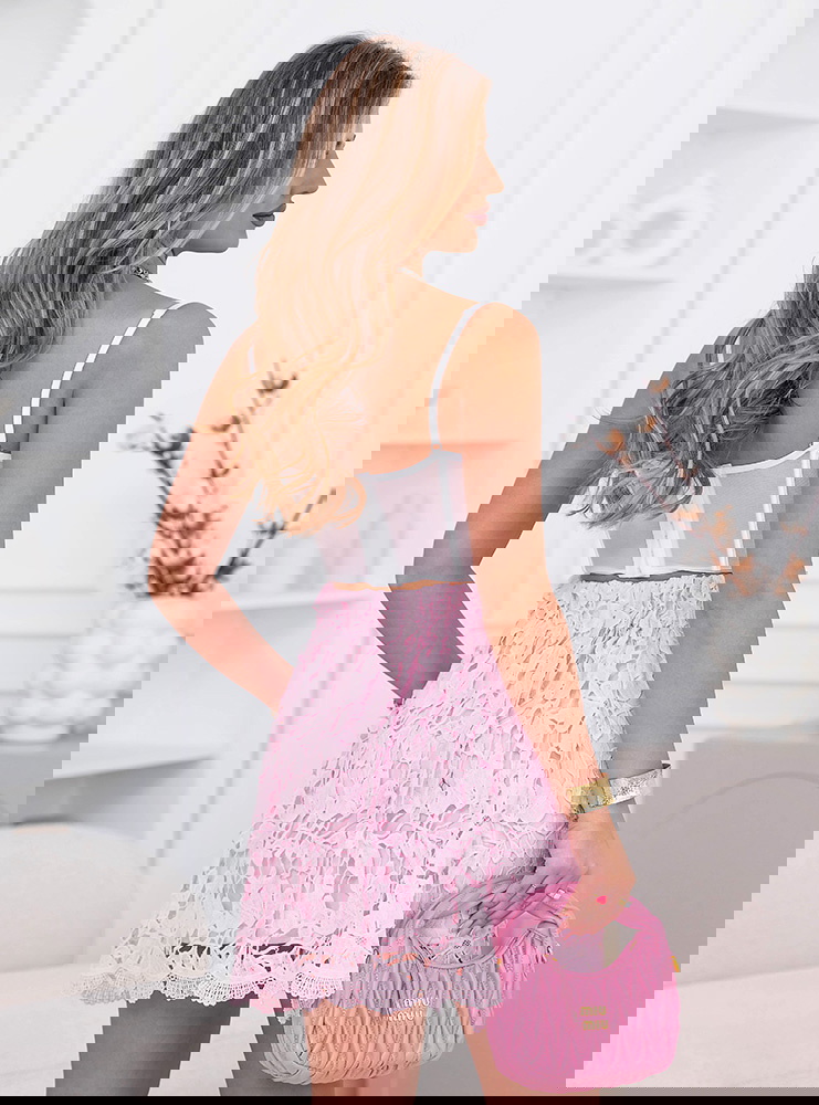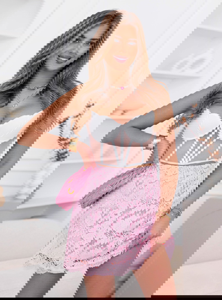 Pudrowa spódniczka ażurkowa Adelela to lekka, dziewczęca propozycja, która od razu przyciąga uwagę swoim subtelnym wykończeniem. Ażurowy wzór nadaje jej wyjątkowej delikatności i sprawia, że wygląda bardzo świeżo i kobieco. Krótki fason pięknie podkreśla nogi i dodaje stylizacji lekkości. Materiał układa się swobodnie, dzięki czemu spódniczka dobrze prezentuje się w ruchu. Delikatne wykończenie na dole dodaje jej uroku i sprawia, że całość wygląda dopracowanie. To model, który świetnie sprawdzi się na cieplejsze dni i różne okazje. Łatwo zestawisz ją zarówno z prostą górą, jak i bardziej elegancką bluzką. Idealna, jeśli lubisz lekkie, kobiece stylizacje.