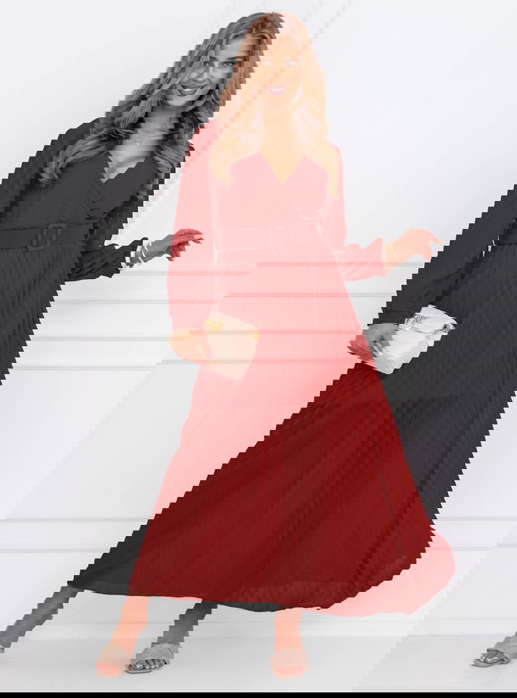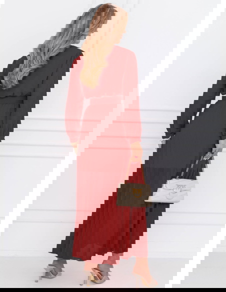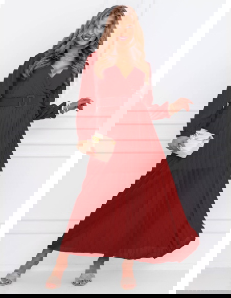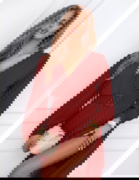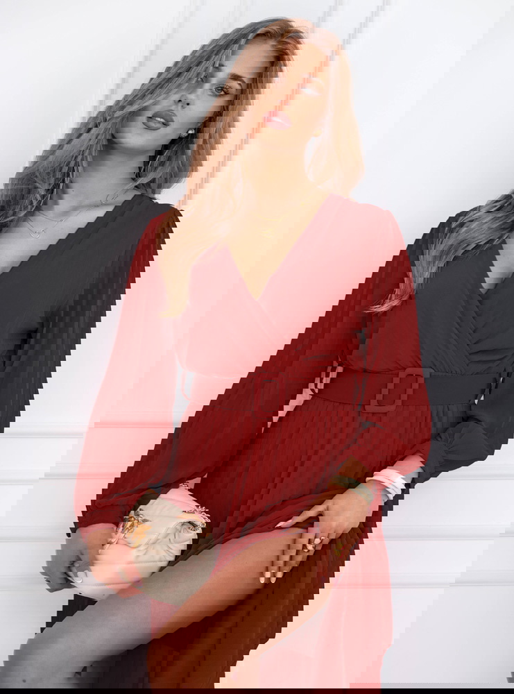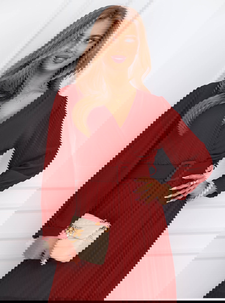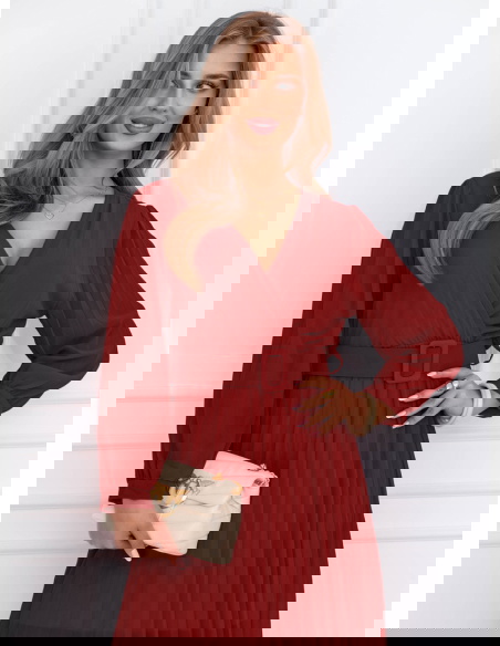 Bordowa sukienka z przekładanym dekoltem Liarna