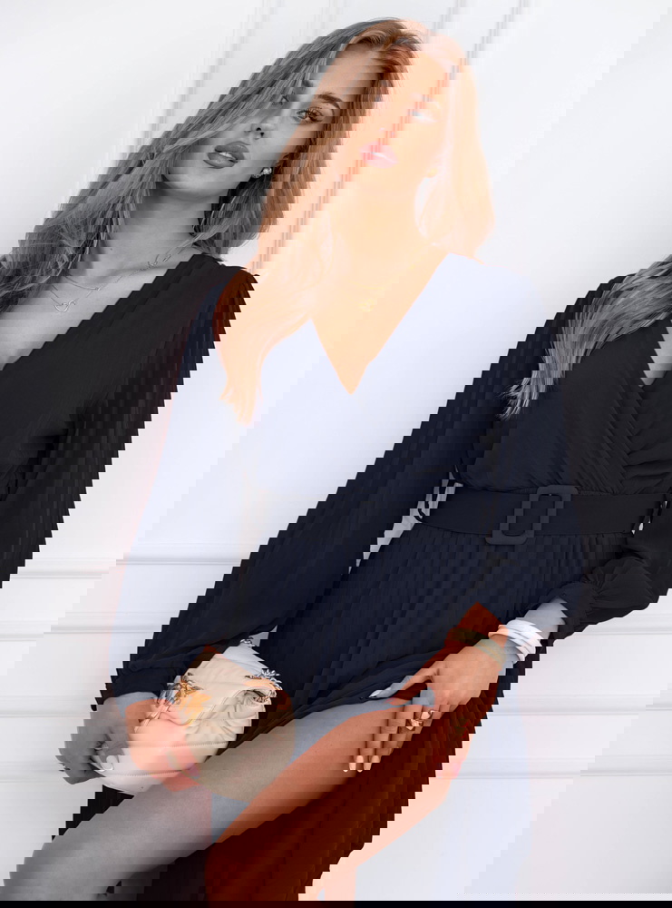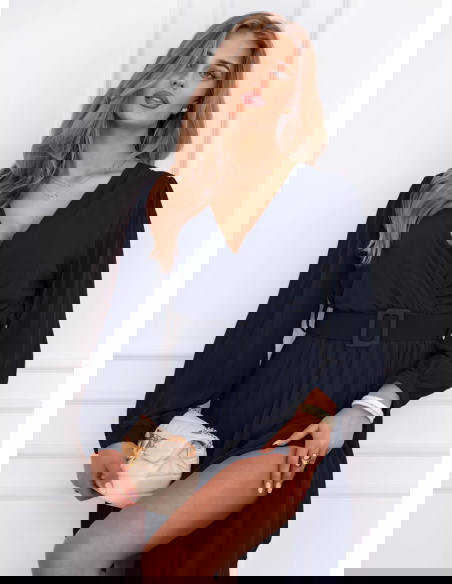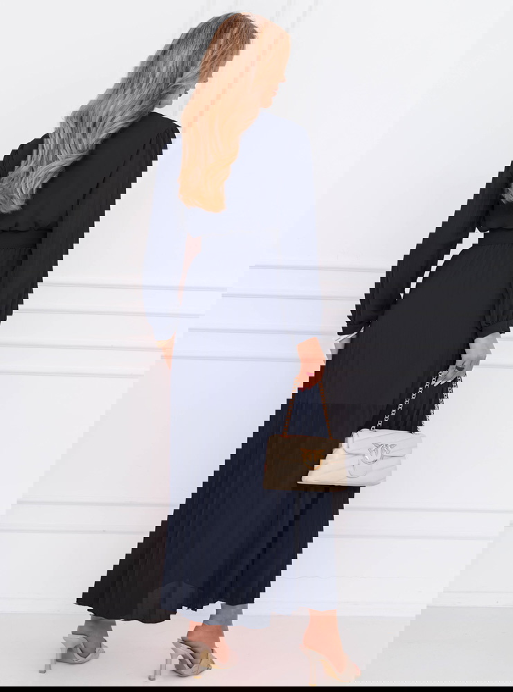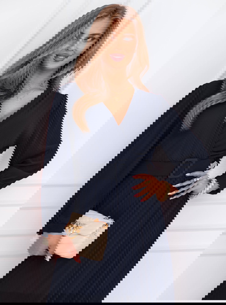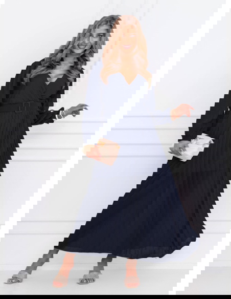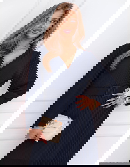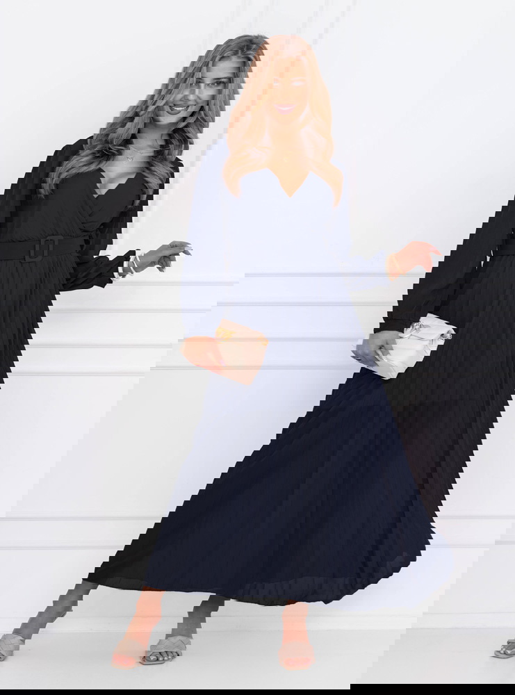 Granatowa sukienka z przekładanym dekoltem Liarna