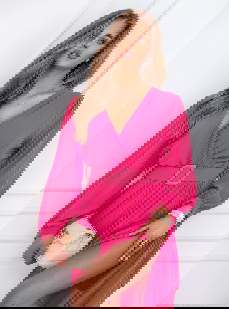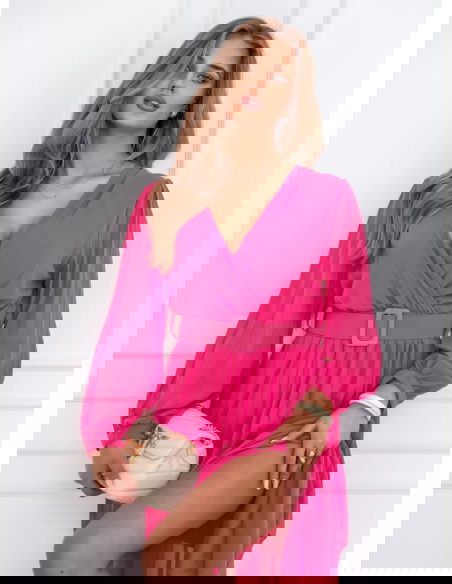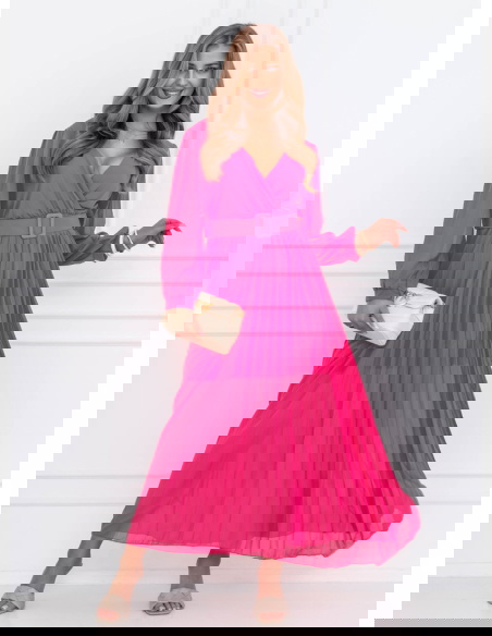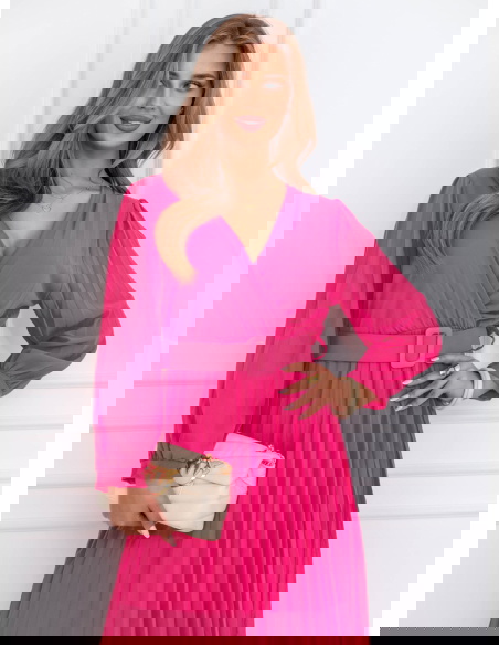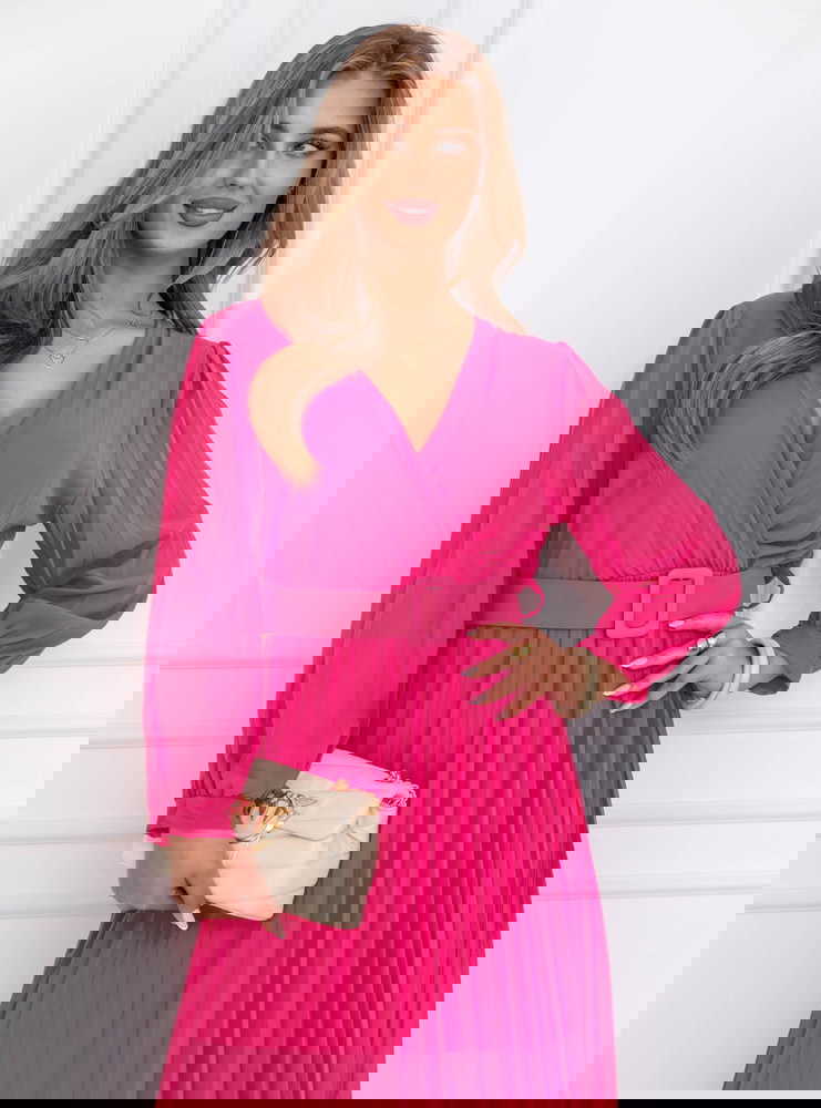 Sukienka z przekładanym dekoltem Liarna - fuksja
