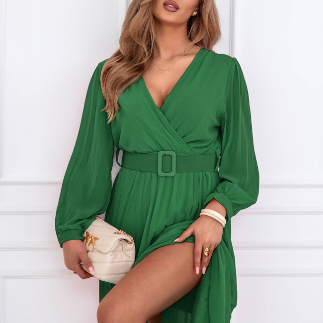 Zielona sukienka z przekładanym dekoltem Liarna