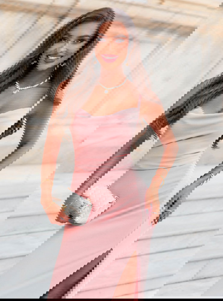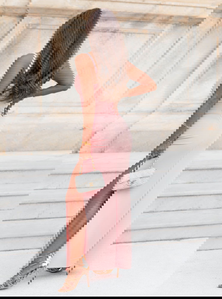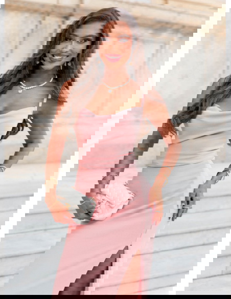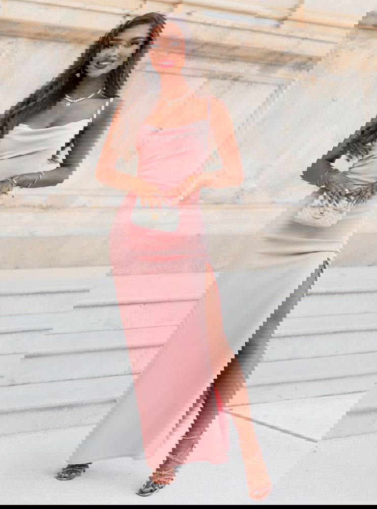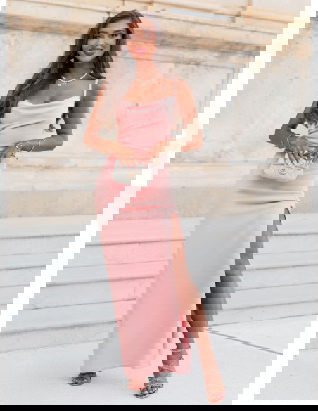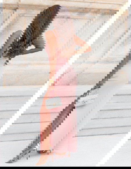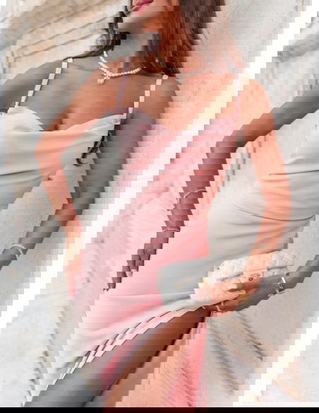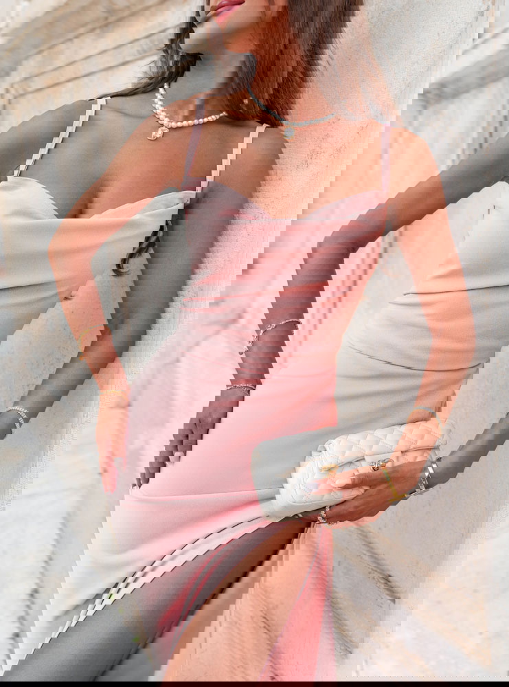 Pudrowa sukienka z rozcięciem Jasie