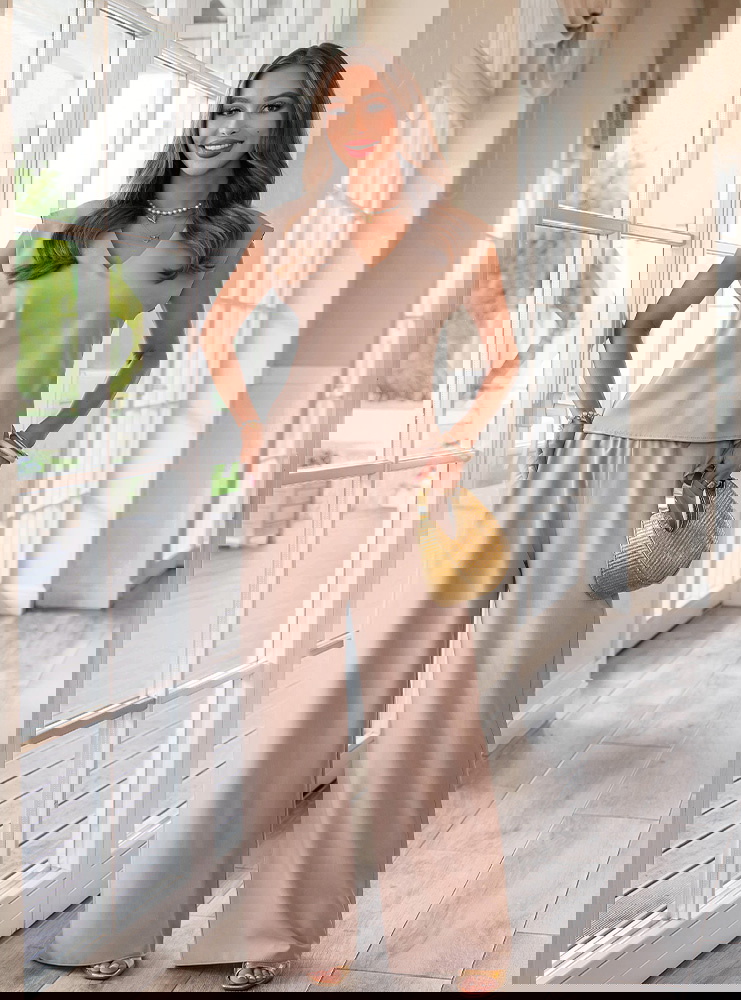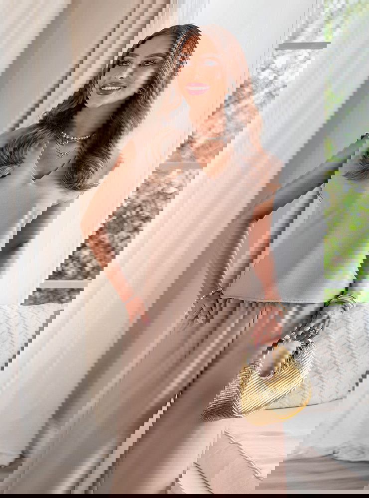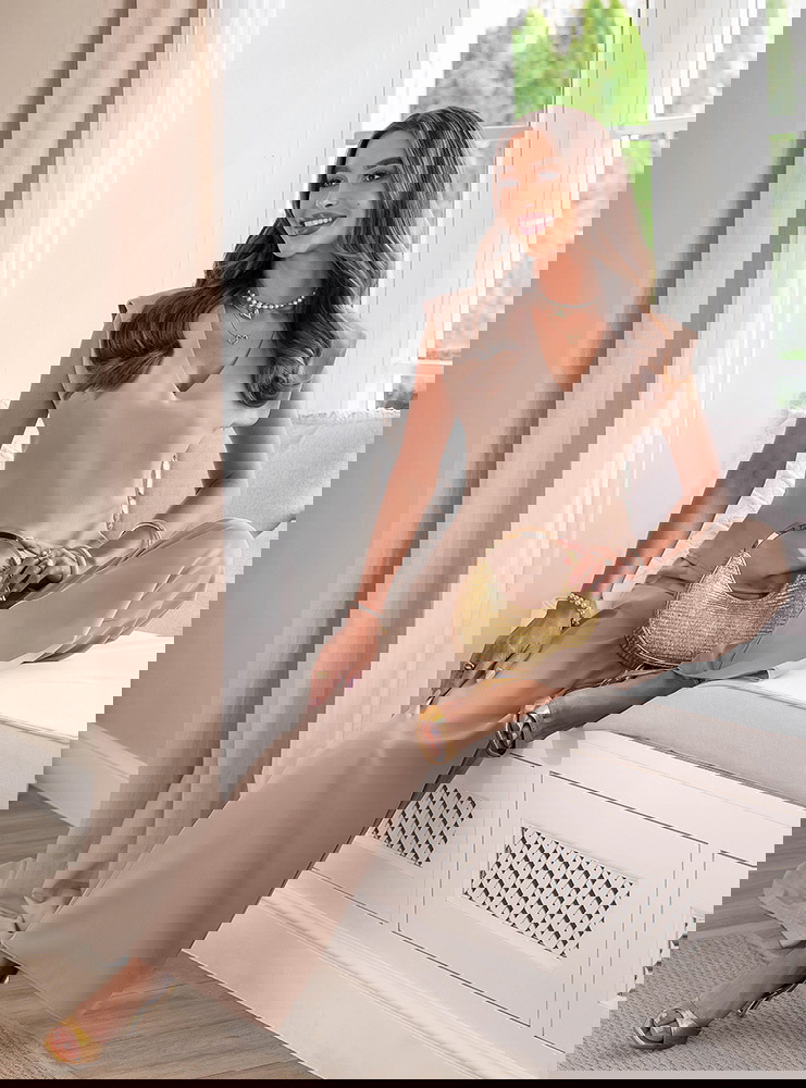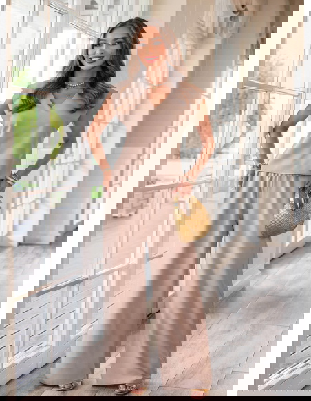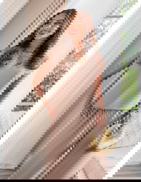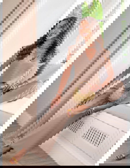 Komplet bluzka z dekoltem w serek i szerokie spodnie Lynndette – mocha mousse to propozycja, która tworzy gotową stylizację bez zbędnego wysiłku. Luźniejsza bluzka z dekoltem w serek subtelnie podkreśla górę i dobrze układa się na sylwetce. Szerokie spodnie nadają całości lekkości i płynności ruchu, dzięki czemu komplet wygląda bardzo kobieco. Wysoki stan podkreśla talię i optycznie wydłuża nogi. Materiał miękko się układa i nie traci formy w ciągu dnia. Kolor mocha mousse dodaje elegancji i wpisuje się w spokojną, dopracowaną estetykę. Model świetnie oddaje klimat kolekcji Bonjour Paris, gdzie liczy się prostota, kobiecość i wyczucie stylu.