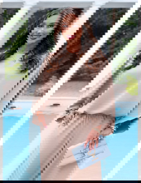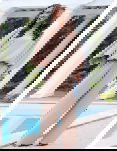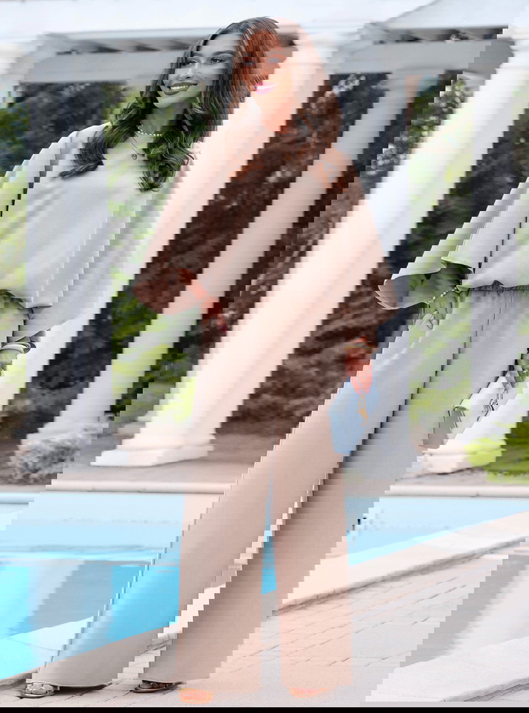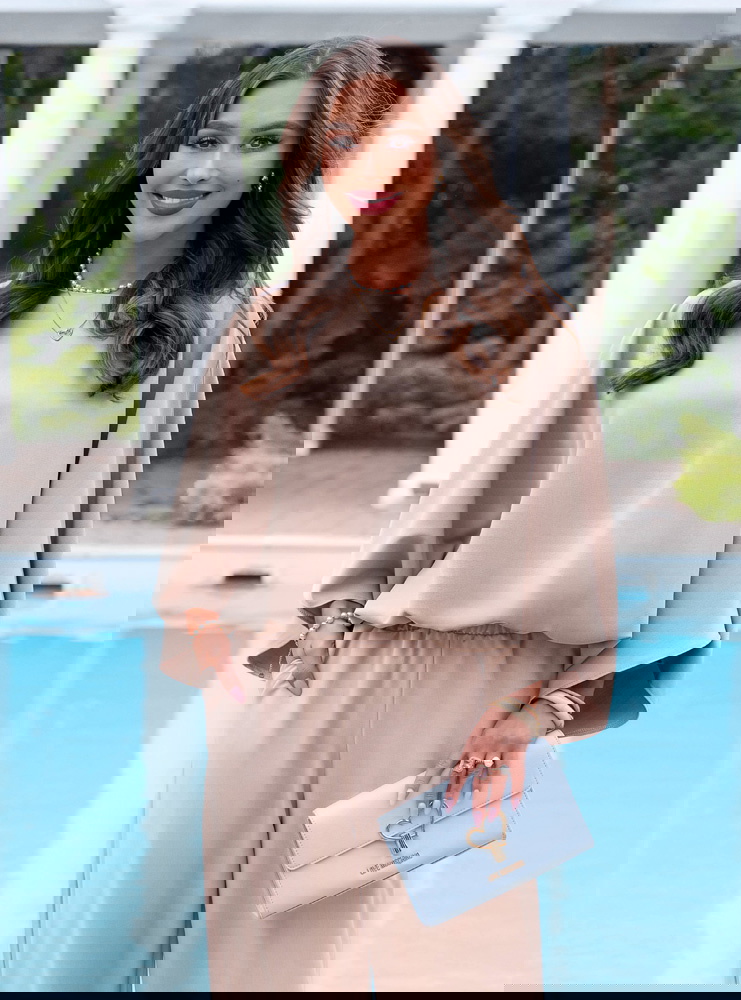 Komplet bluzka oversize i spodnie Kyrralynn – mocha mousse to wygodna, ale dopracowana stylizacja, która robi efekt bez zbędnego wysiłku. Luźna bluzka o oversize’owym kroju swobodnie układa się na sylwetce i daje lekki, niewymuszony look. Szerokie rękawy dodają charakteru i sprawiają, że całość wygląda bardziej nowocześnie. Spodnie z prostą, szeroką nogawką wydłużają sylwetkę i dobrze się układają przy ruchu. Elastyczna talia zapewnia komfort noszenia przez cały dzień. Materiał jest miękki i przyjemny, dzięki czemu komplet sprawdzi się zarówno na wyjścia, jak i na co dzień. Kolor mocha mousse dodaje elegancji i łatwo łączy się z dodatkami. To idealny wybór, jeśli chcesz wyglądać stylowo, ale nadal czuć się swobodnie.