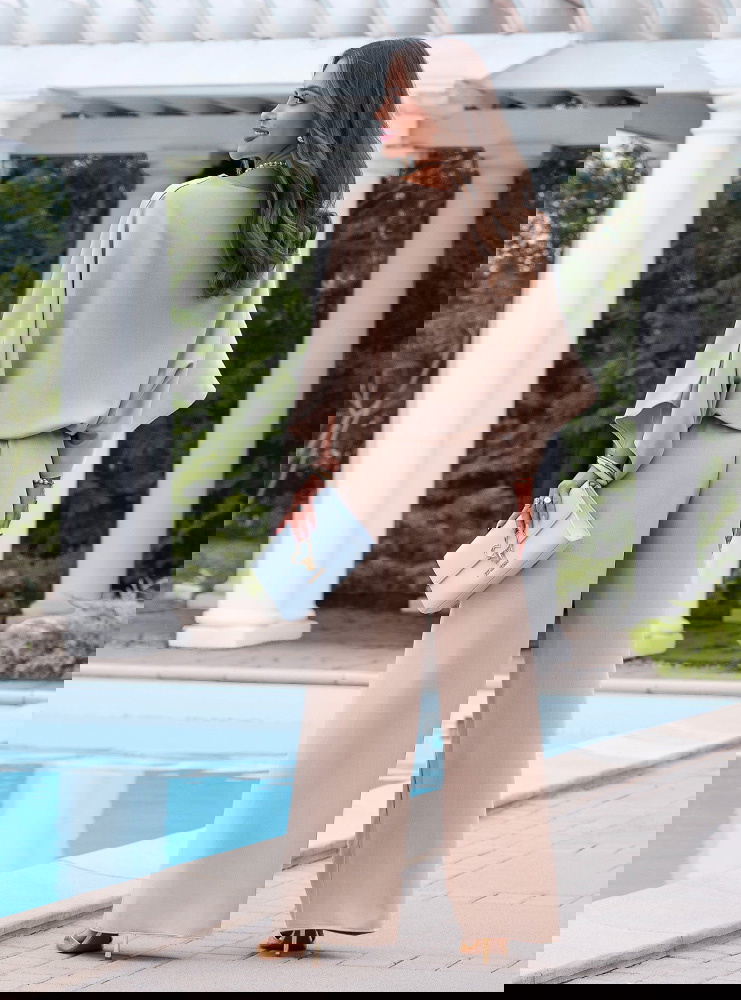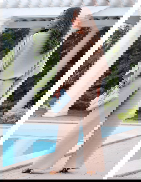 Ten komplet daje dużo możliwości stylizacji, bo możesz go nosić razem albo osobno. Luźna forma sprawia, że wygląda nowocześnie, ale nadal bardzo kobieco. To świetna baza do tworzenia prostych, ale efektownych zestawów.