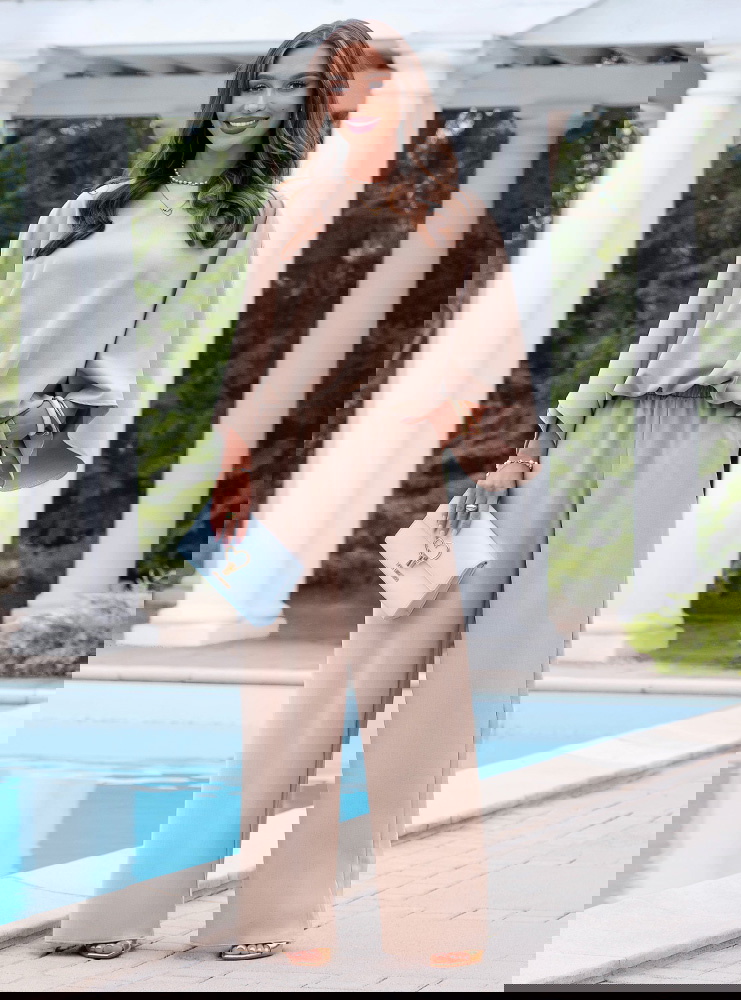 Komplet bluzka oversize i spodnie Kyrralynn - mocha mousse