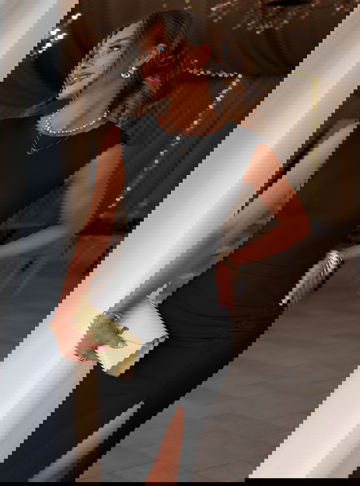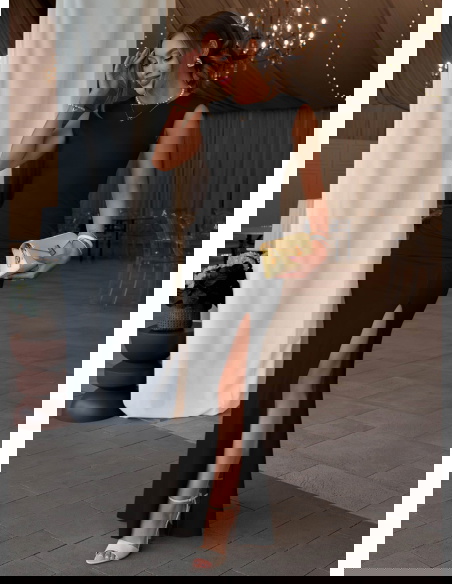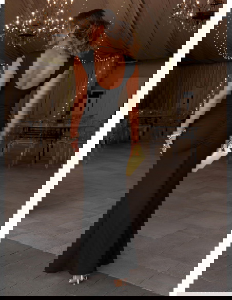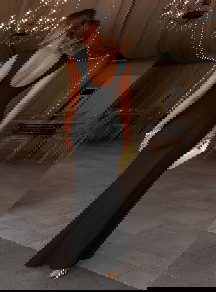 Czarna dopasowana sukienka maxi z odkrytymi plecami Rahnii