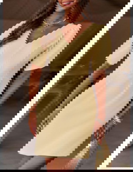 Sukienka mini z dekoltem w serek Shanesee - masełkowa