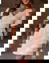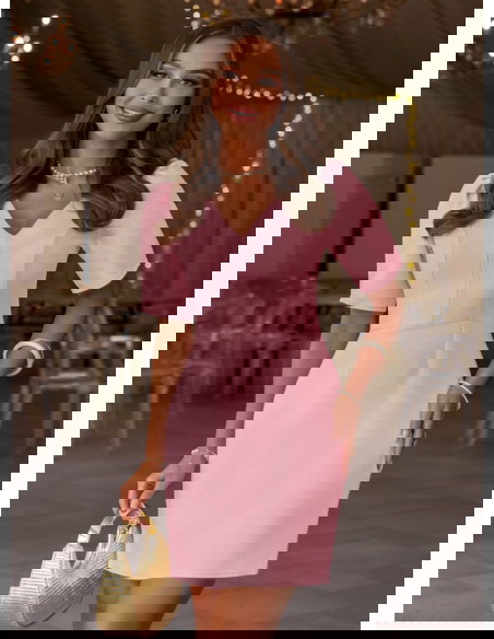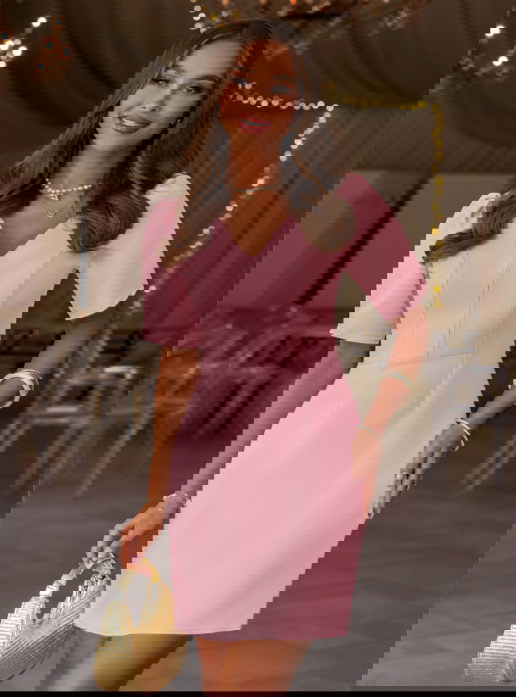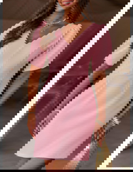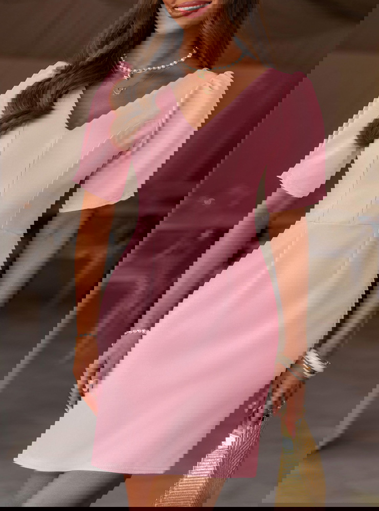 Pudrowa sukienka mini z dekoltem w serek Shanesee