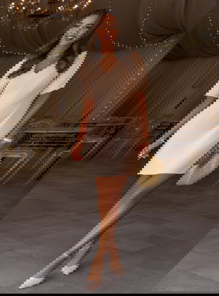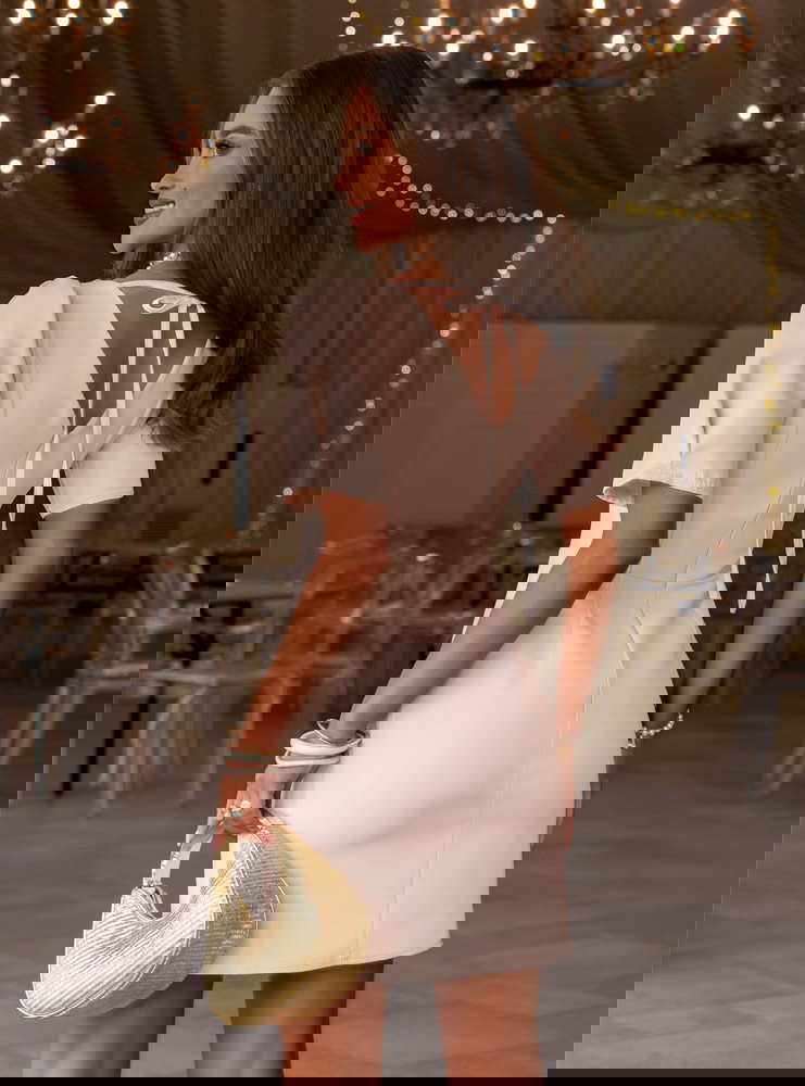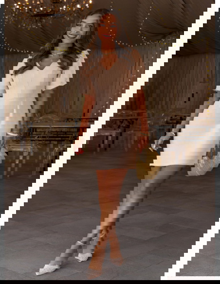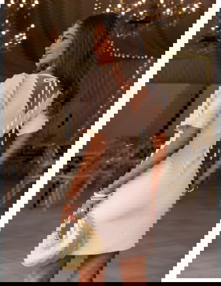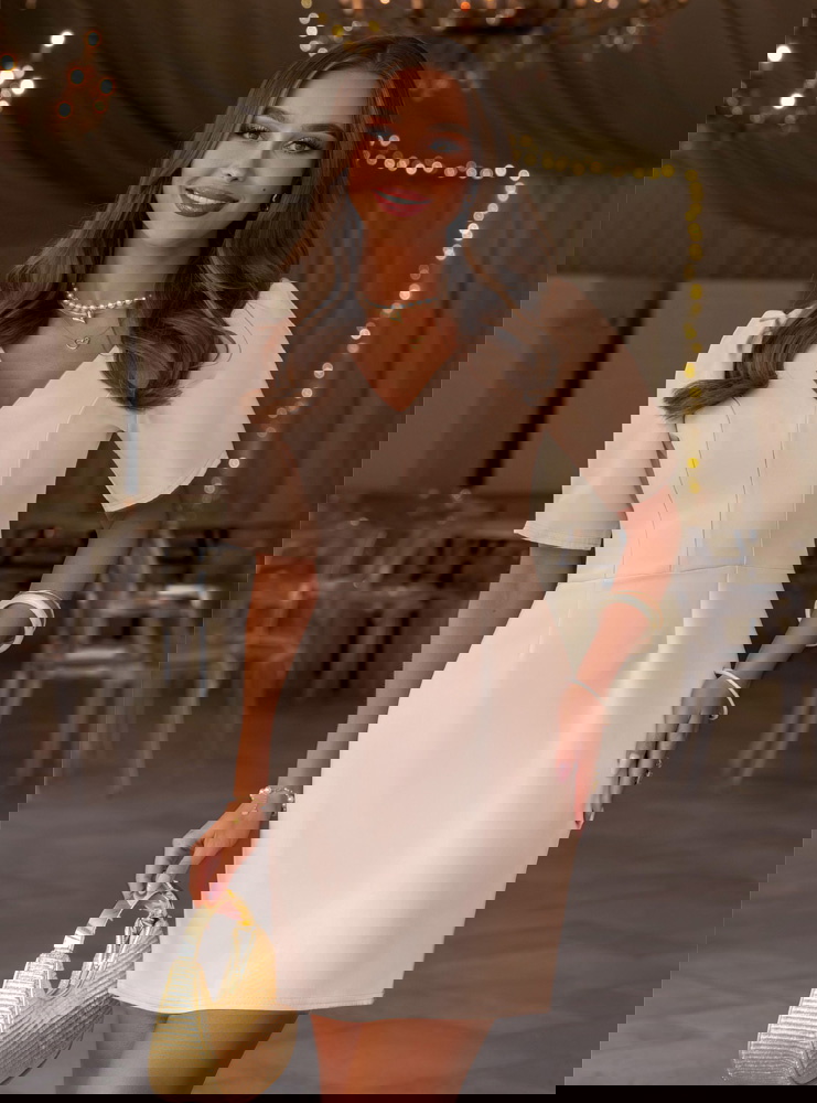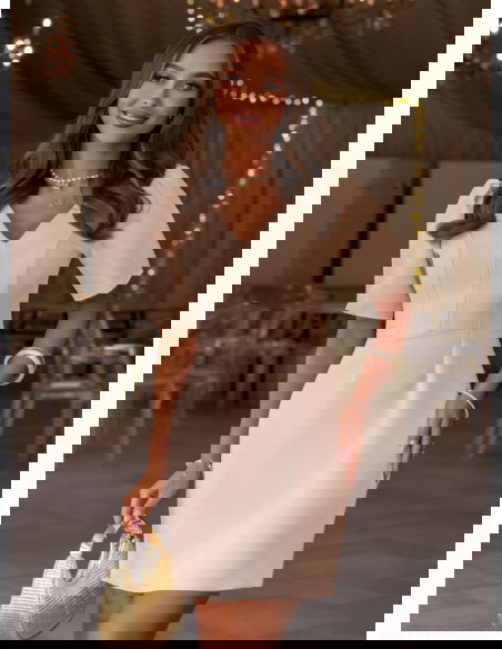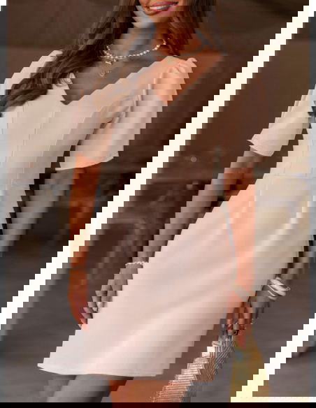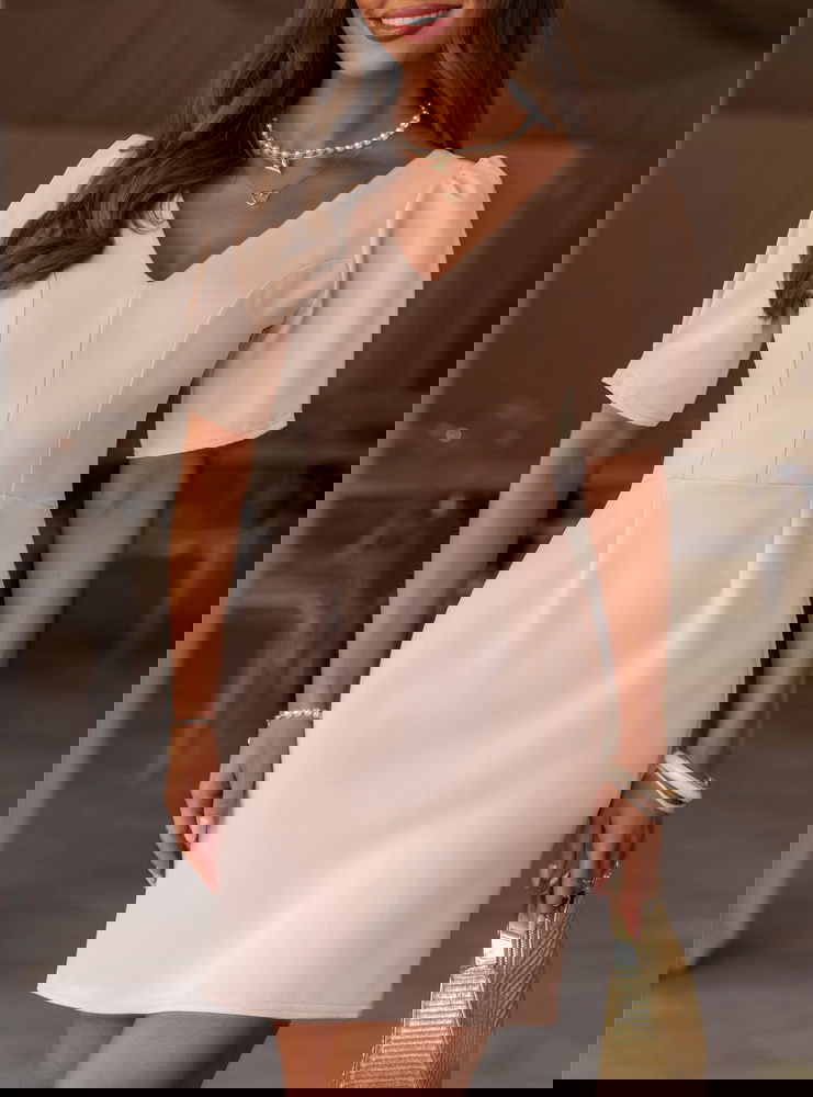 Beżowa sukienka mini z dekoltem w serek Shanesee to elegancka i bardzo kobieca propozycja, która subtelnie podkreśla sylwetkę i sprawdza się w wielu stylizacjach. Dopasowana góra z dekoltem w serek ładnie eksponuje szyję i biust, a pionowe przeszycia optycznie wysmuklają figurę. Krótki rękaw dodaje lekkości i sprawia, że całość wygląda świeżo i proporcjonalnie. Z tyłu znajduje się zamek, dzięki któremu sukienka dobrze się dopasowuje i łatwo się ją zakłada. Wiązanie na plecach przyciąga uwagę i tworzy efektowny detal, który wyróżnia ten model. Beżowy kolor jest ponadczasowy i łatwy do stylizacji, pasuje zarówno do jasnych, jak i mocniejszych dodatków. To sukienka, która łączy prostotę z dopracowanym krojem.
