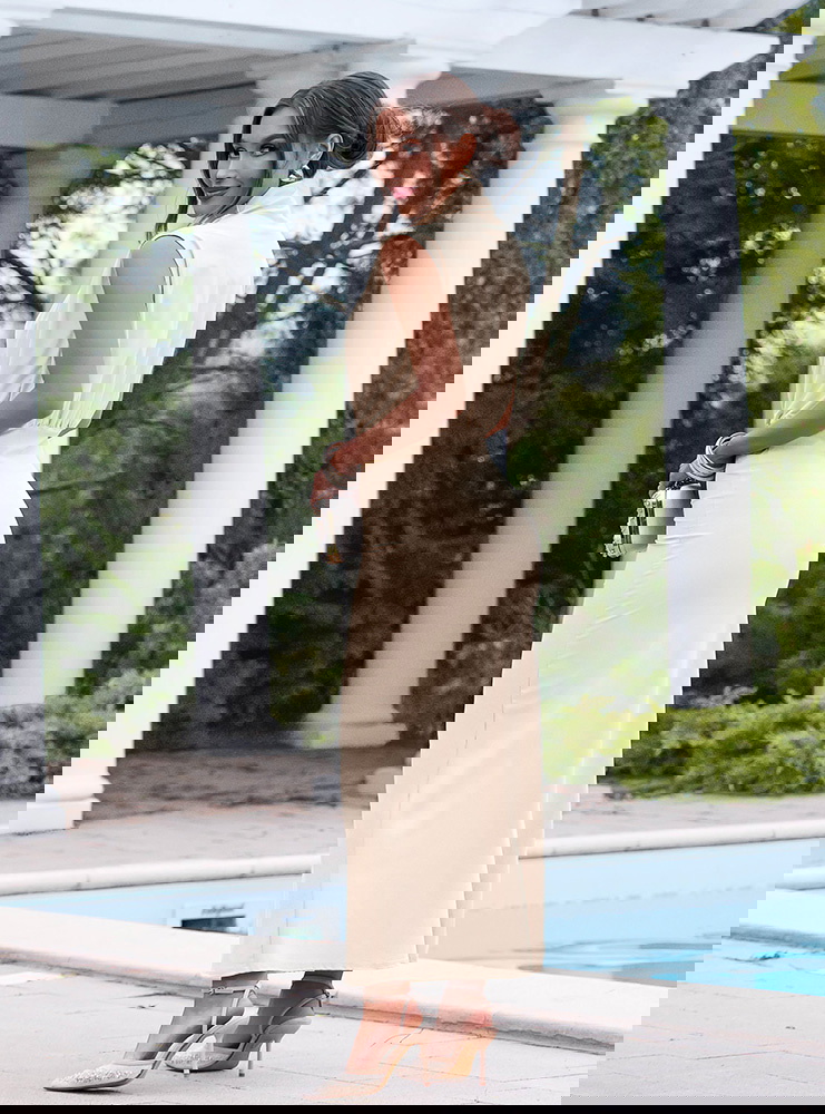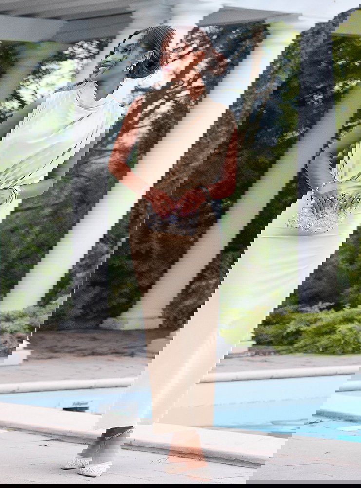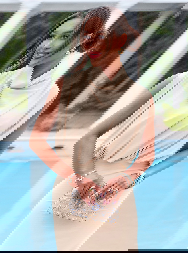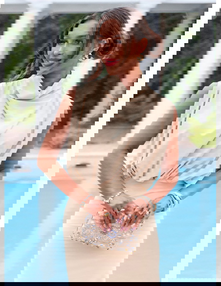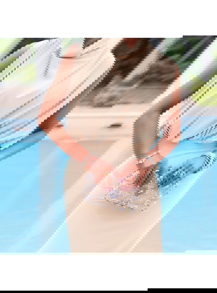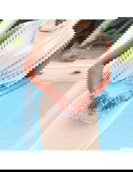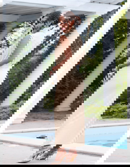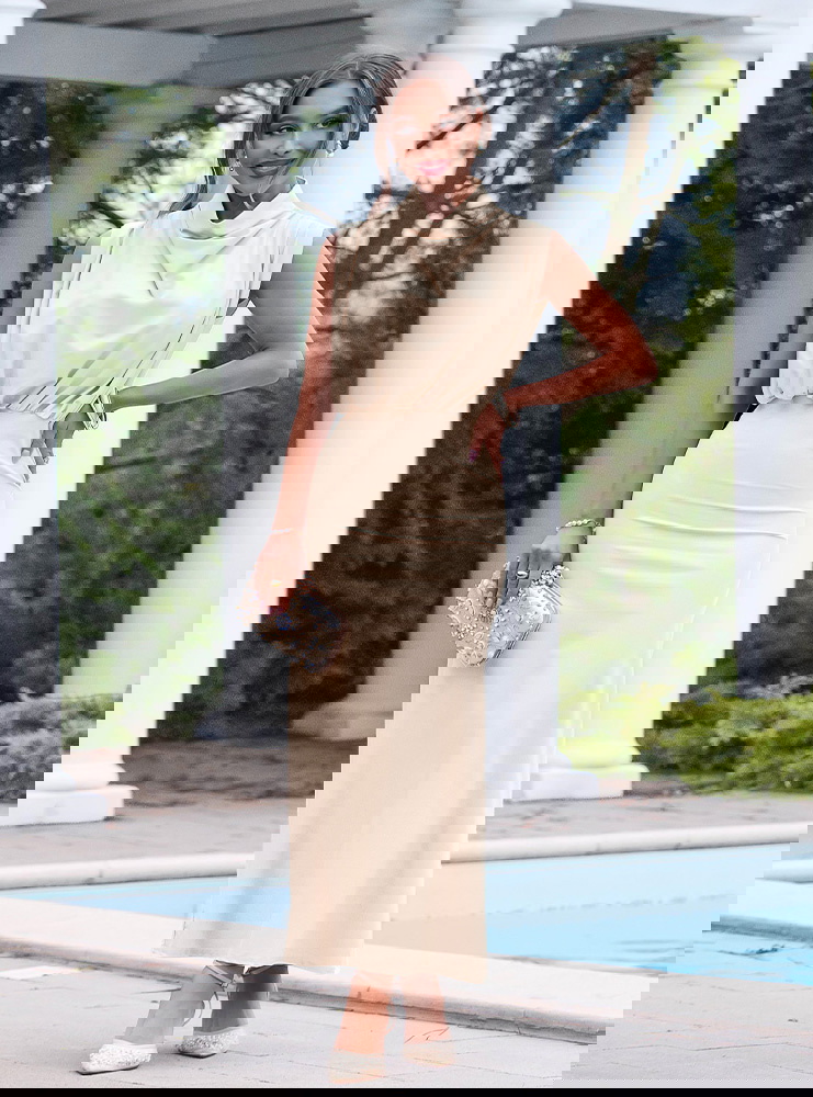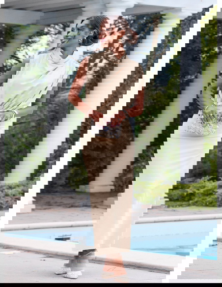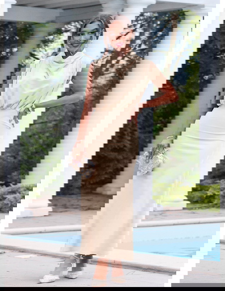Jasnobeżowa sukienka maxi z zabudowanym dekoltem Olivienne