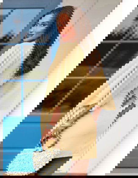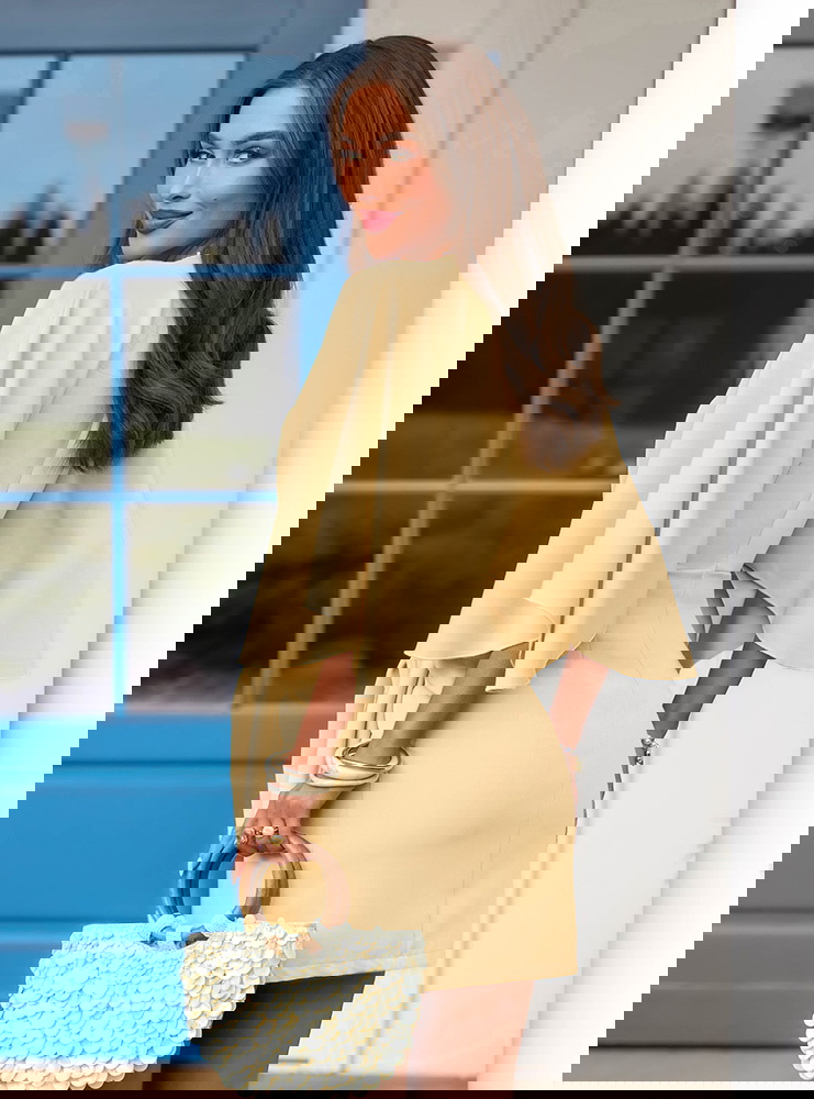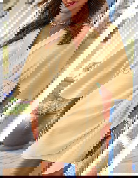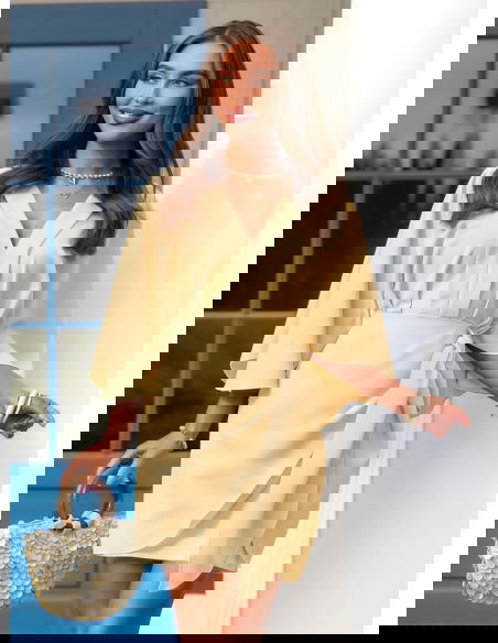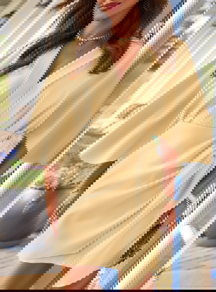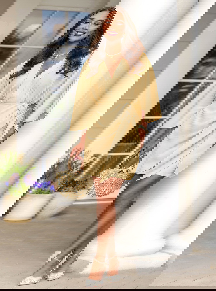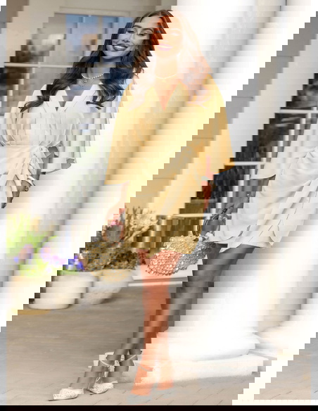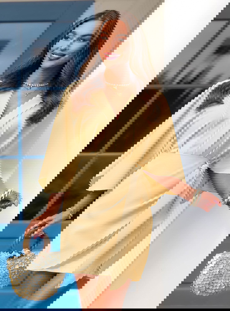 Sukienka mini z wiązaniem w talii Callope - masełkowa