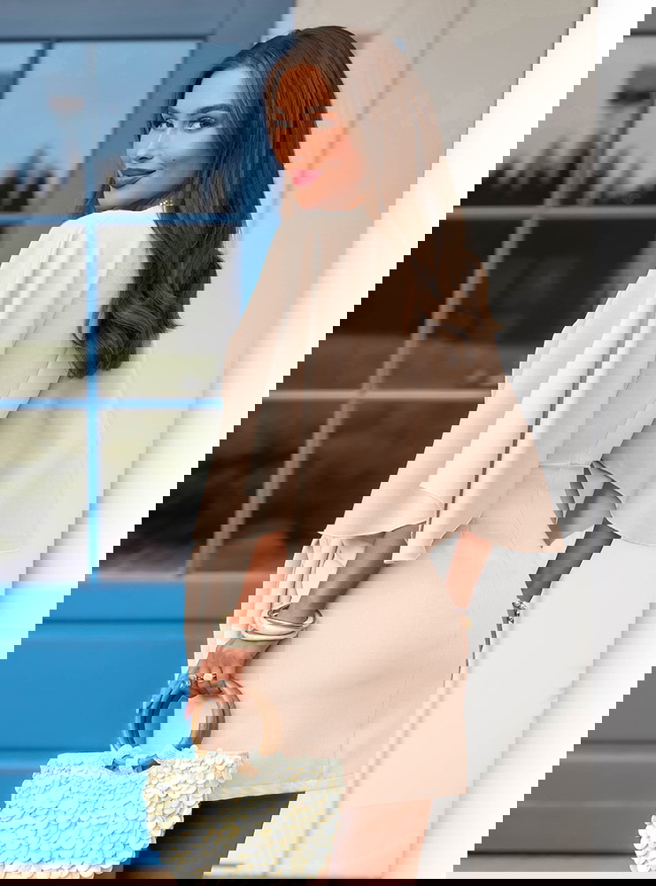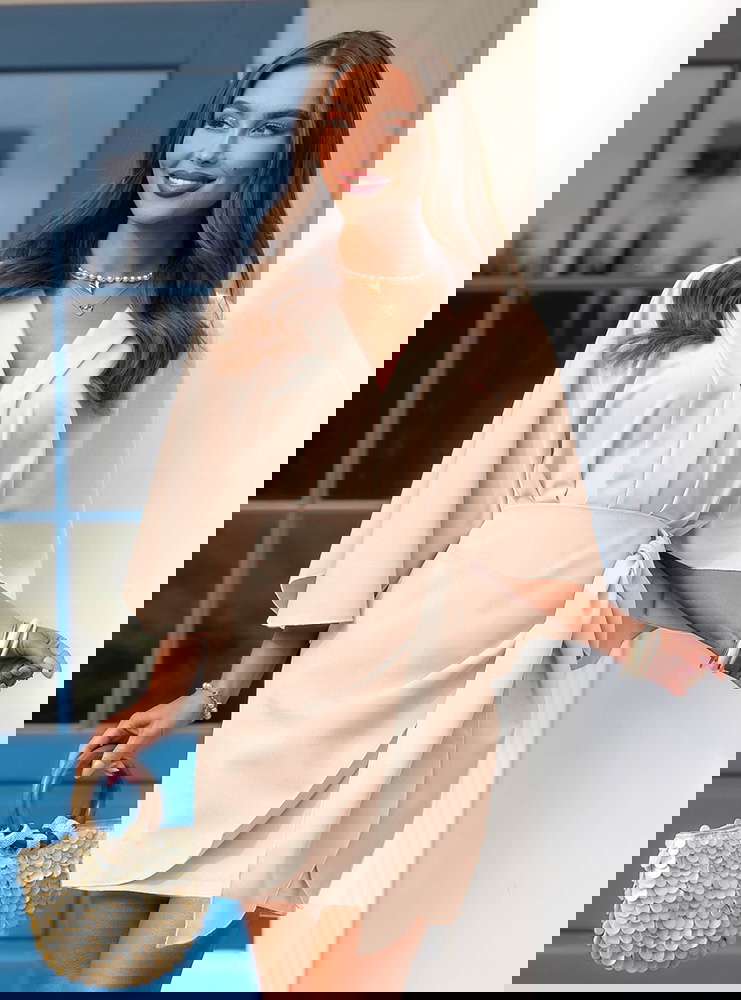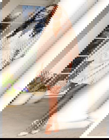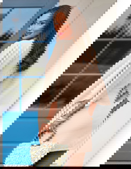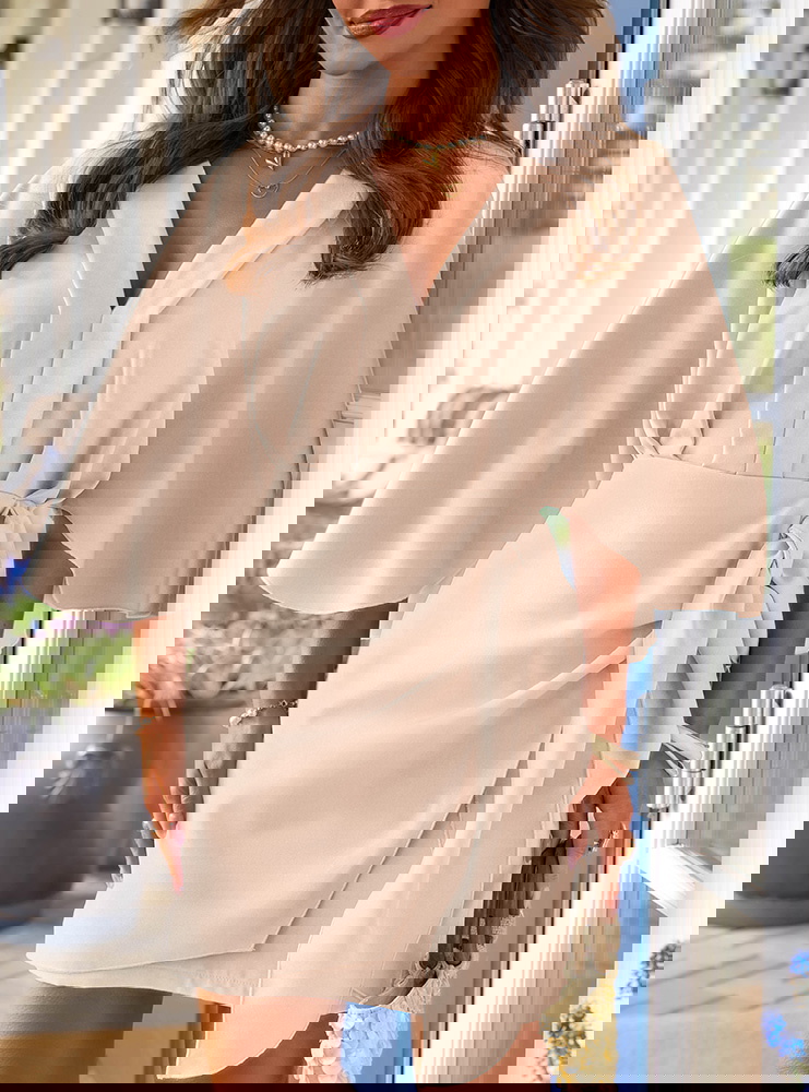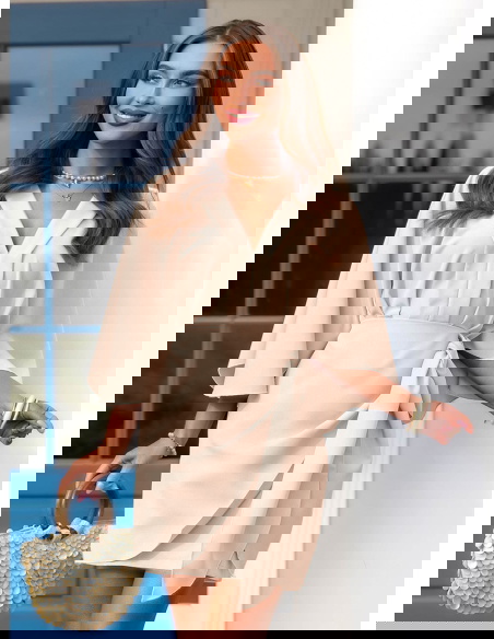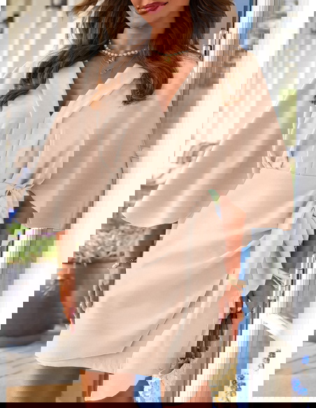 Jasnobeżowa sukienka mini z wiązaniem...
