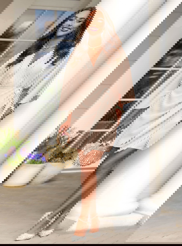 Jasnobeżowa sukienka mini z wiązaniem w talii Callope