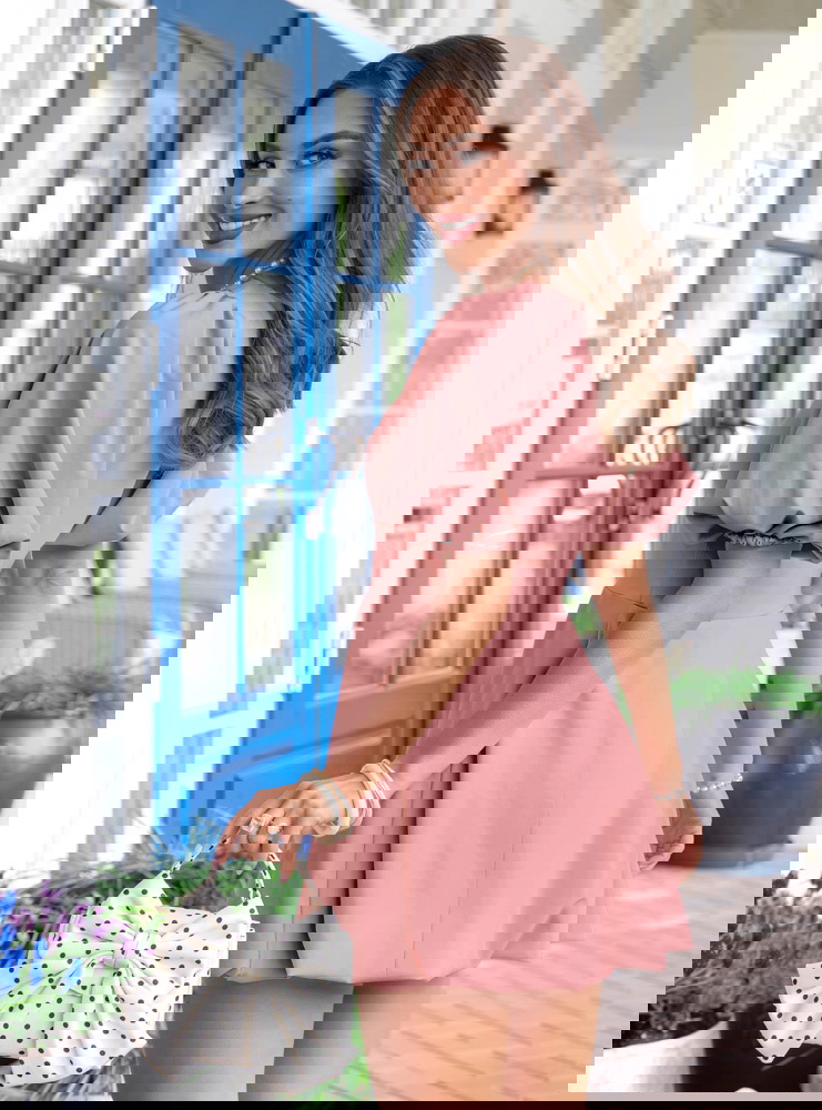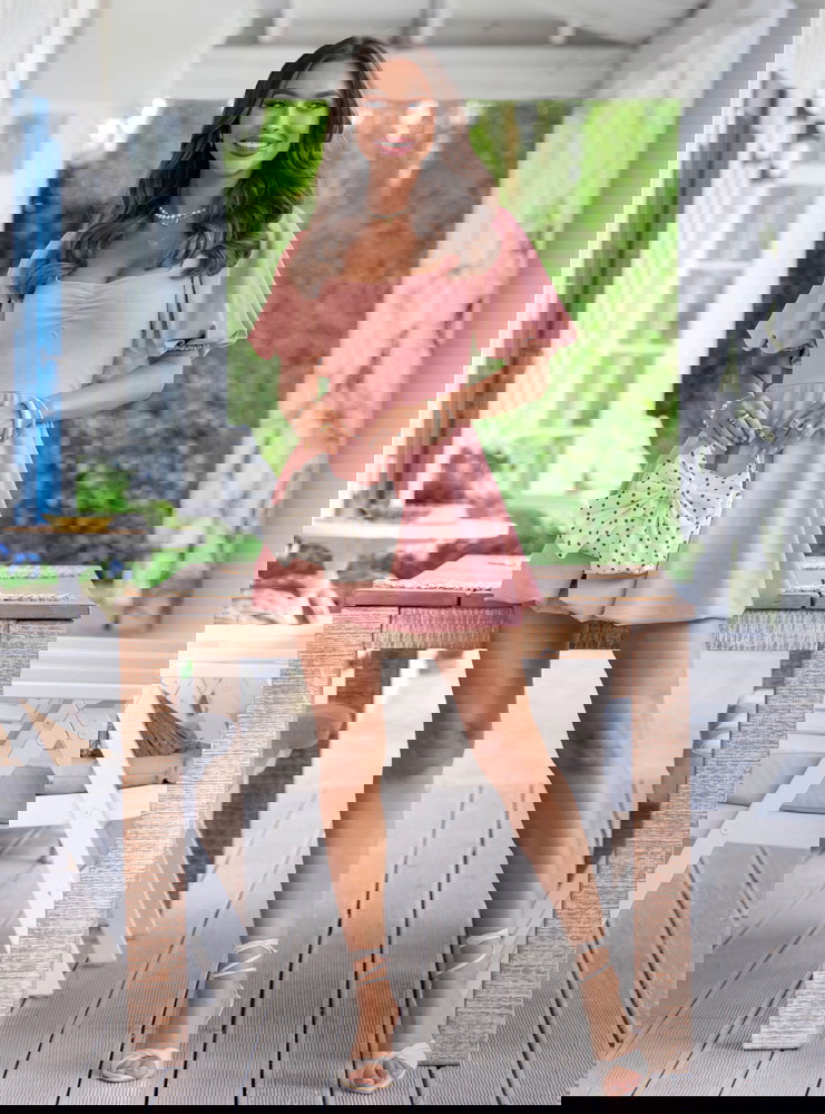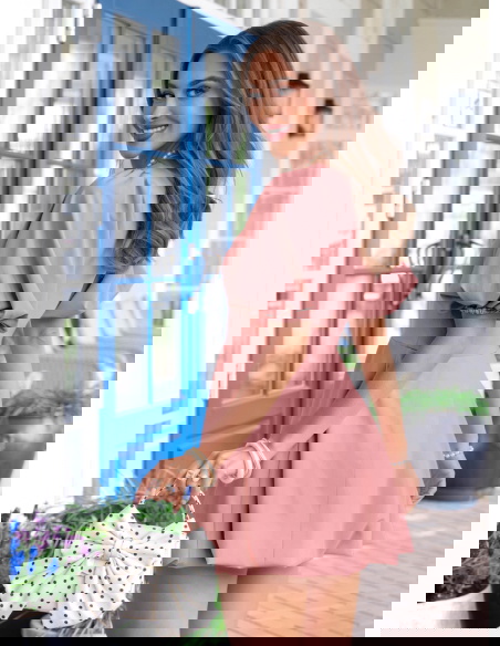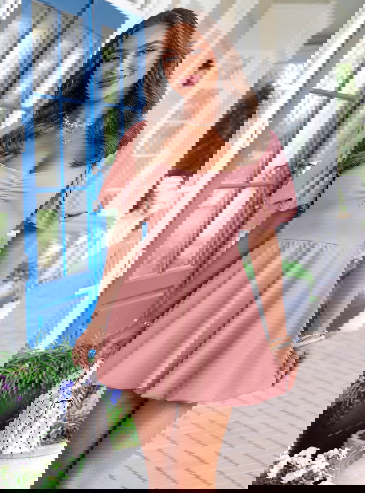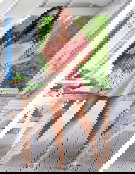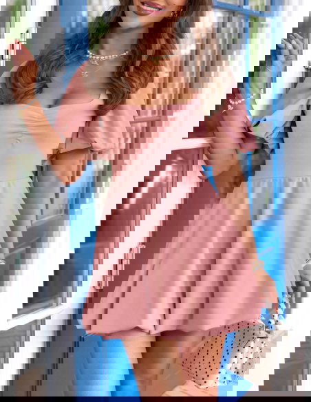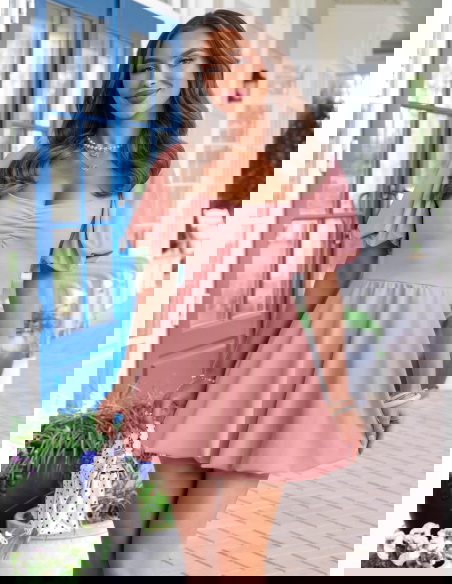 Sukienka mini z bufiastymi rękawami Amberlee - brudny róż