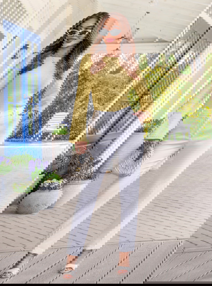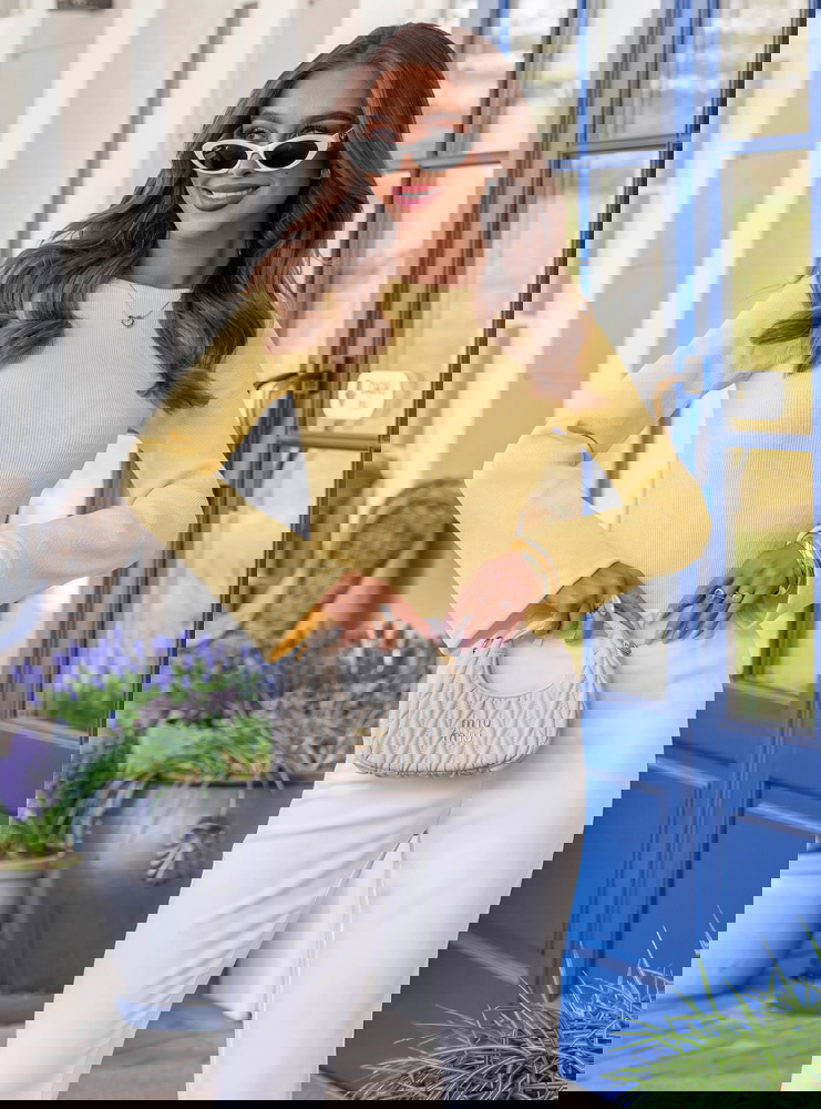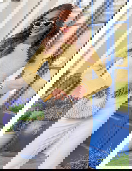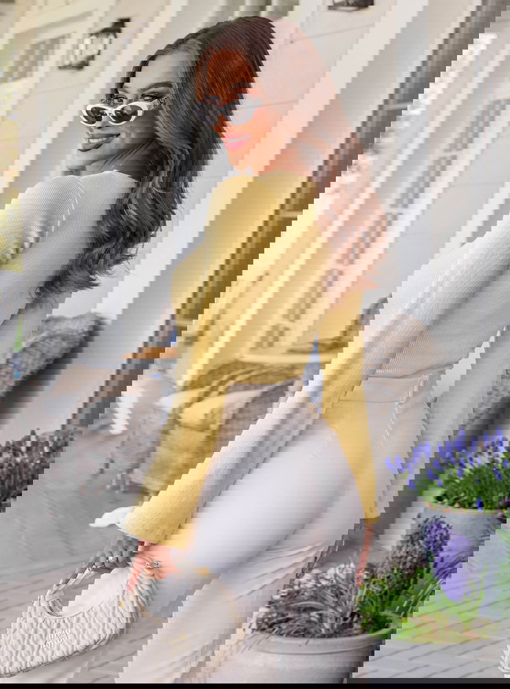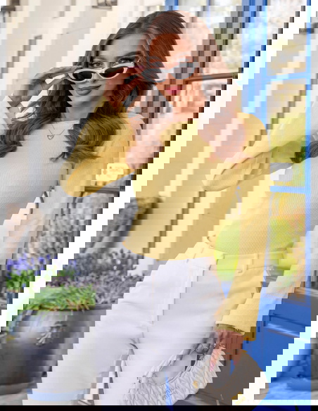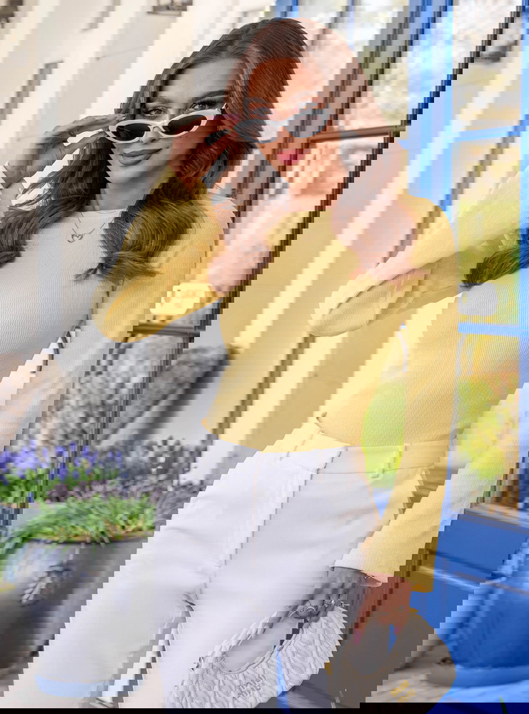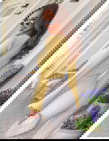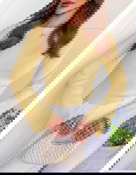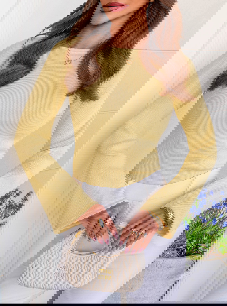 Prążkowana bluzka z rozszerzanym rękawem Thealeen - masełkowa