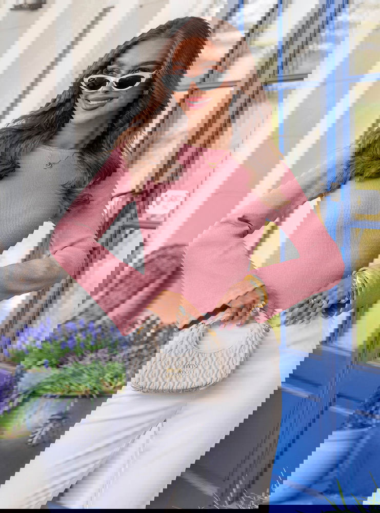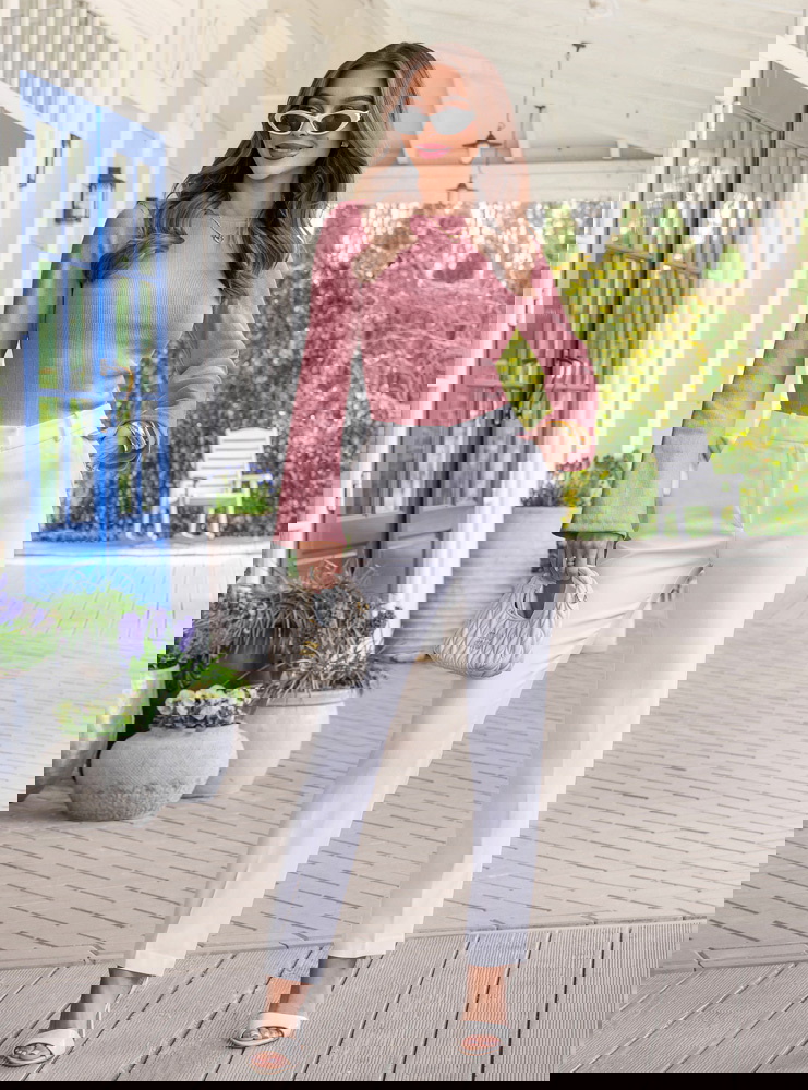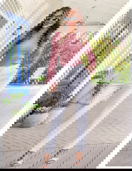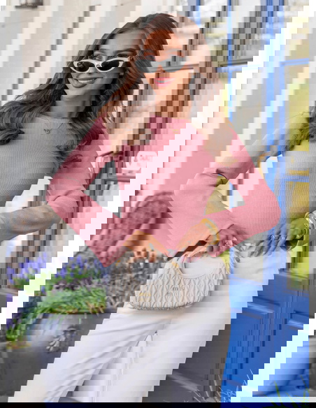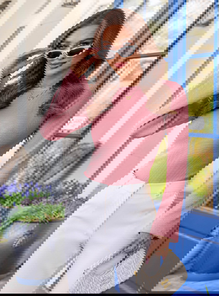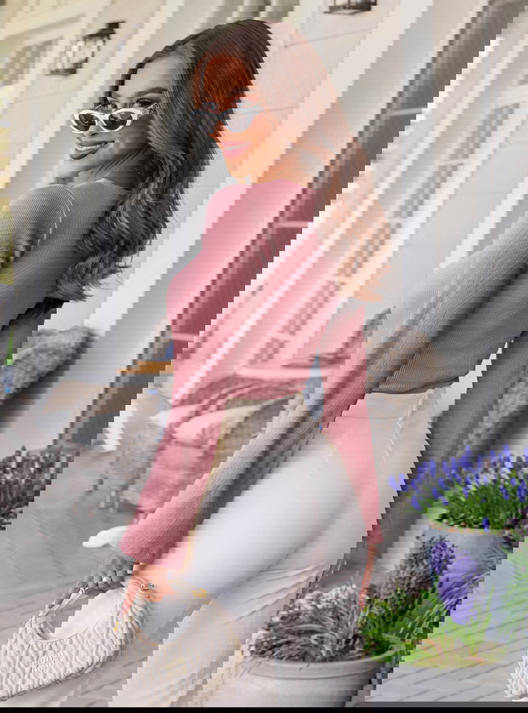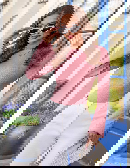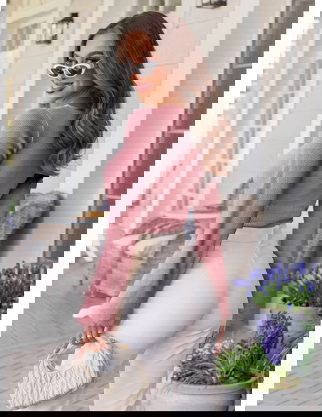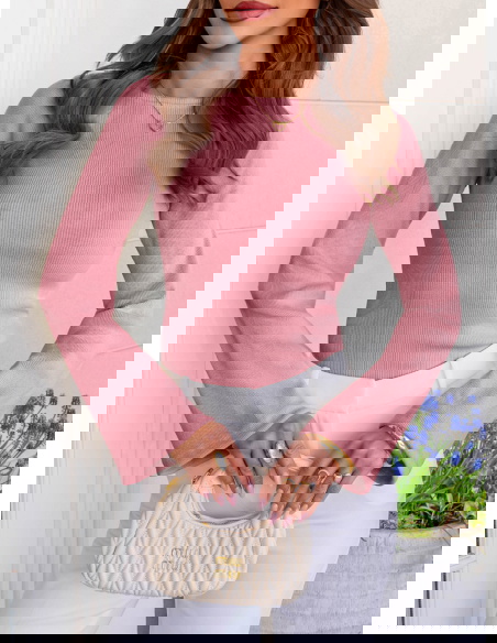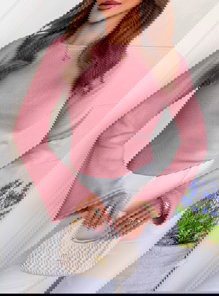 Prążkowana bluzka z rozszerzanym rękawem Thealeen - brudny róż