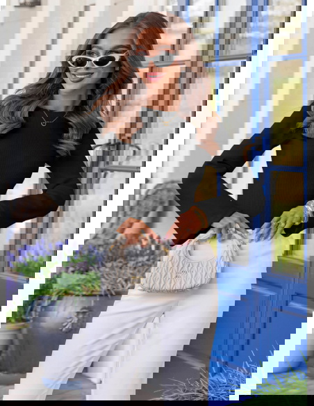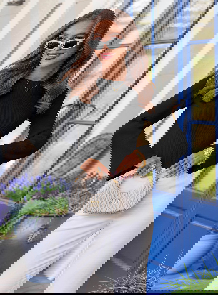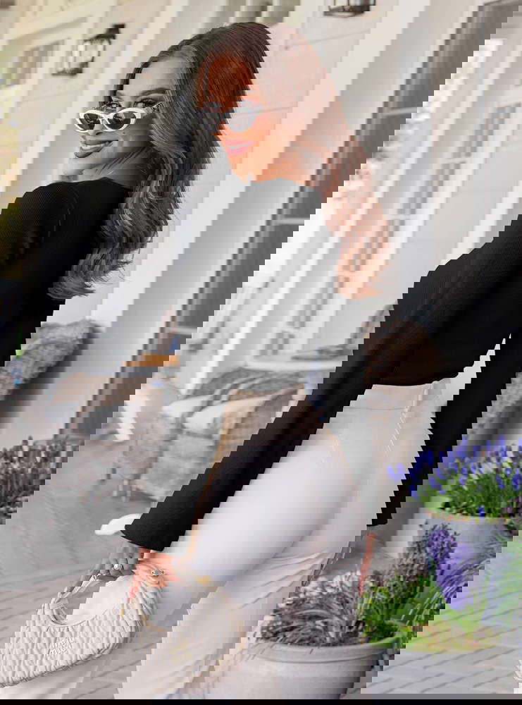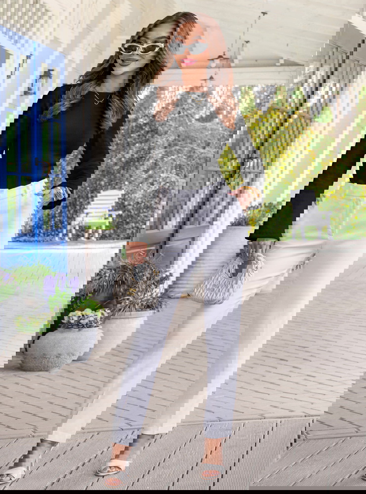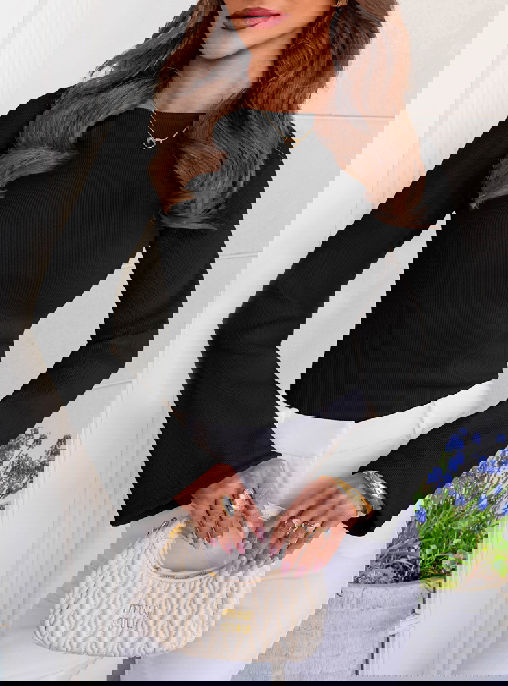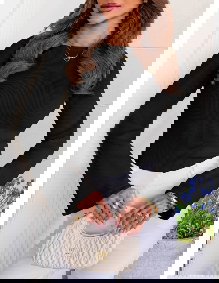 Czarna prążkowana bluzka z rozszerzanym rękawem Thealeen