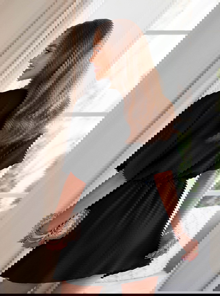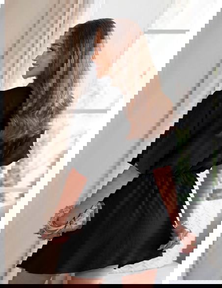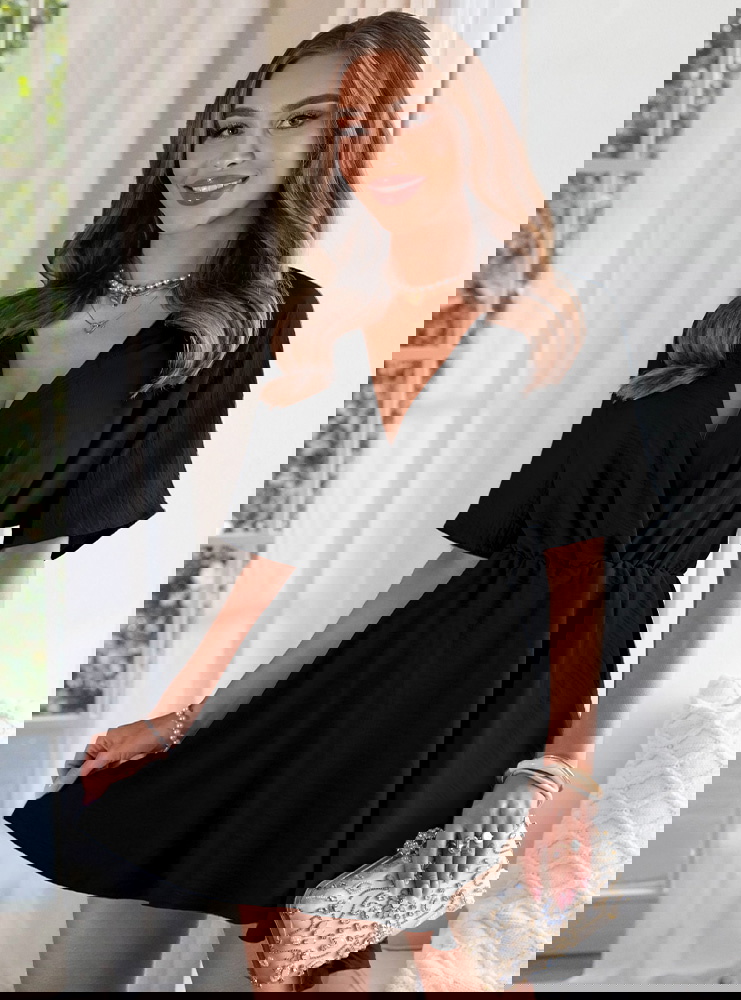 Czarny kombinezon jak sukienka z przekładanym dekoltem Chanisse
