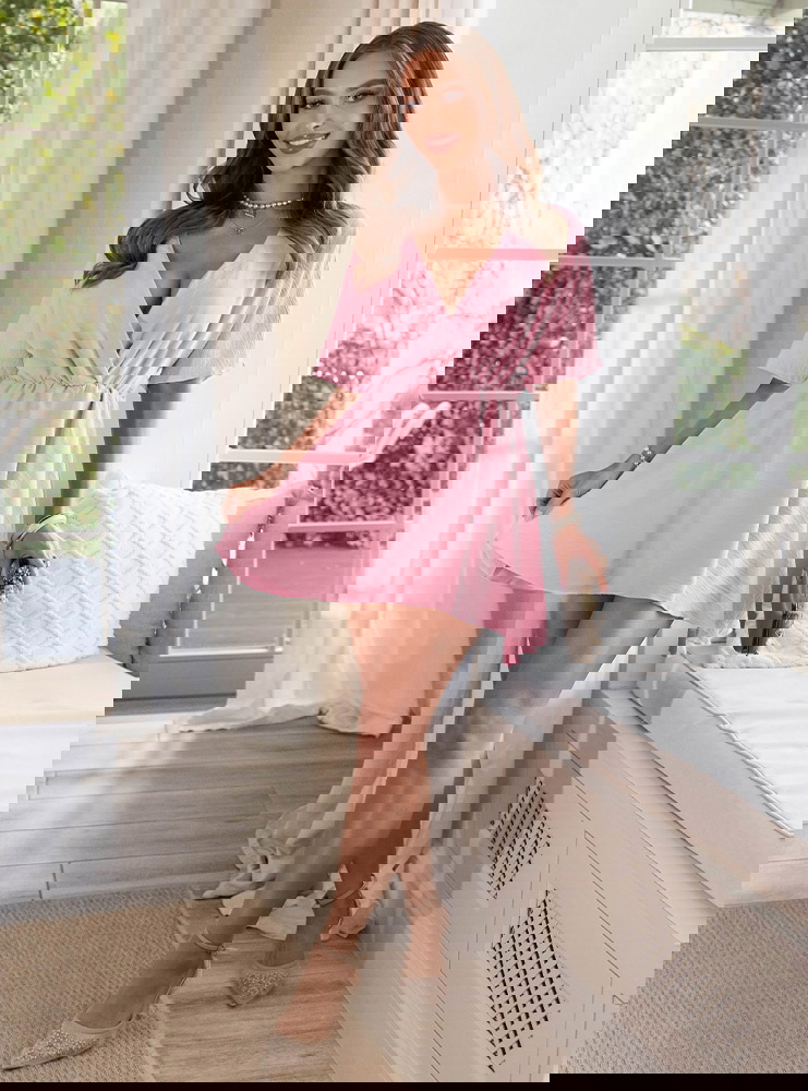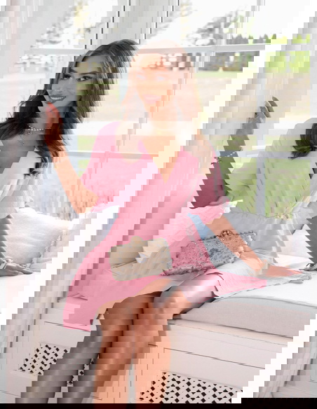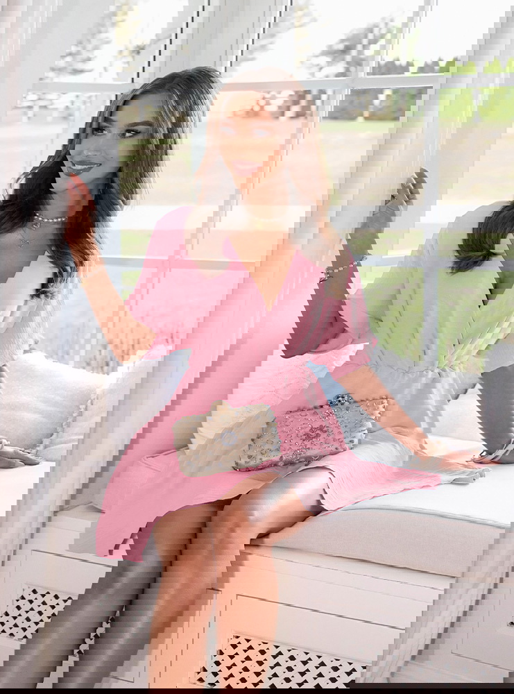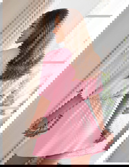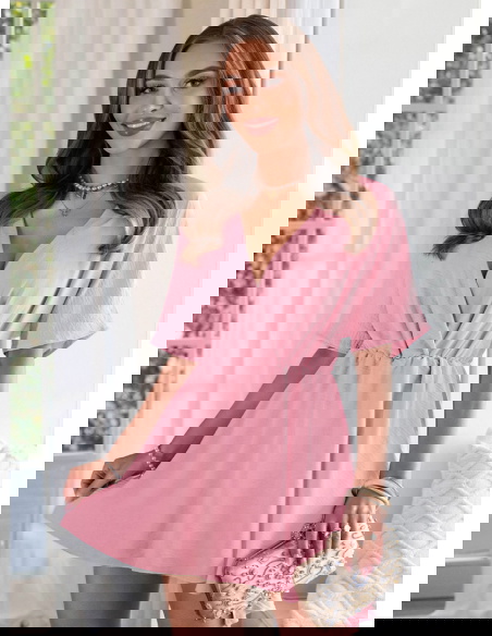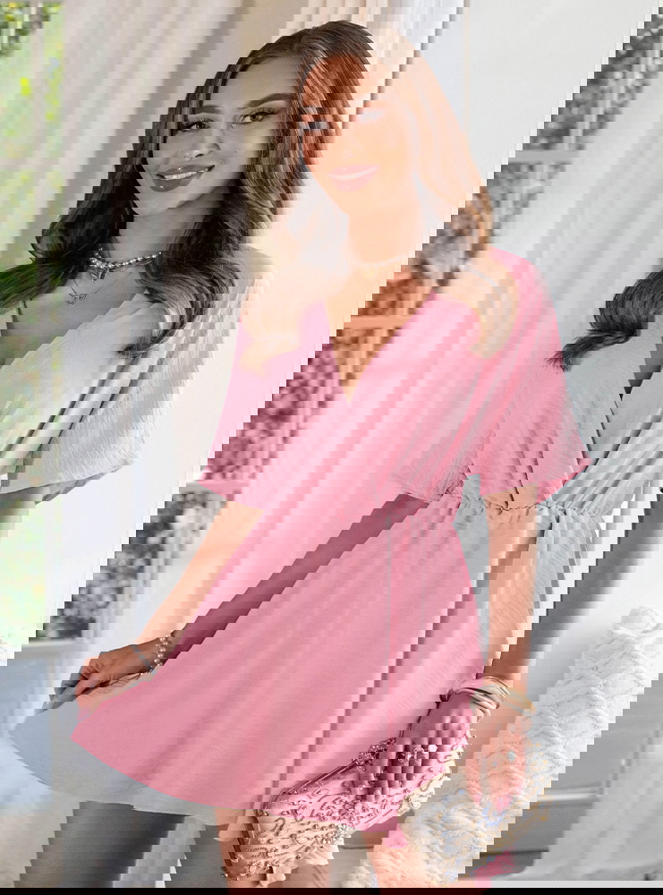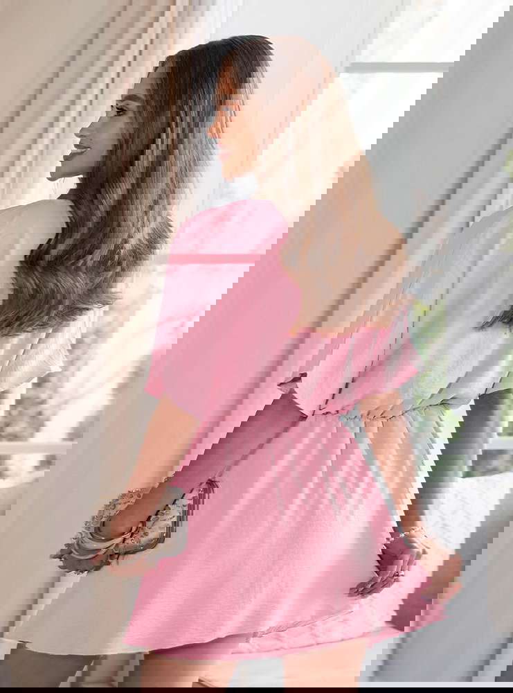 Pudrowy kombinezon jak sukienka z przekładanym dekoltem Chanisse