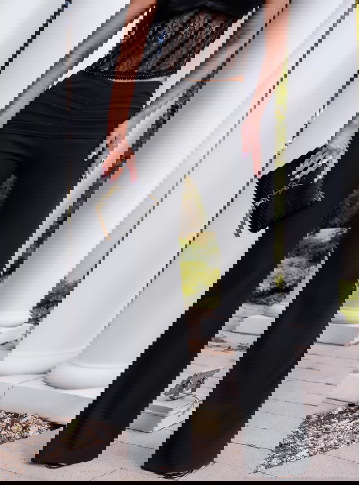 Czarne spodnie z rozszerzanymi nogawkami Marilita