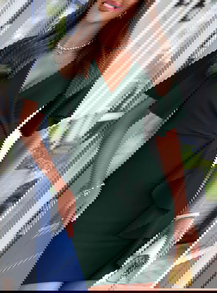Sukienka z przekładanym dekoltem Logestilla - butelkowa zieleń