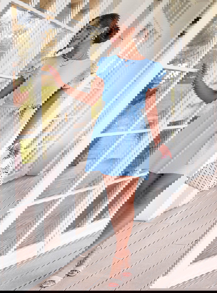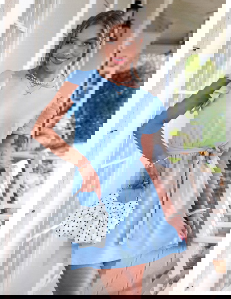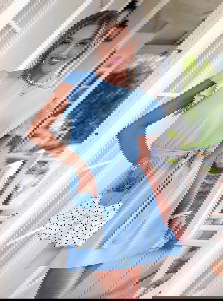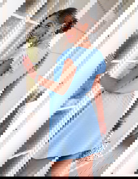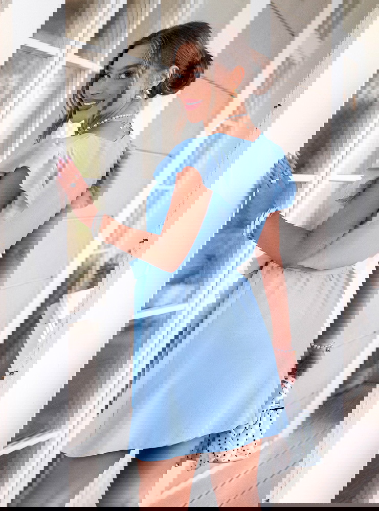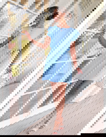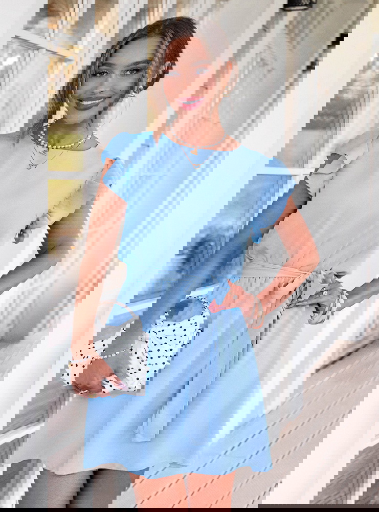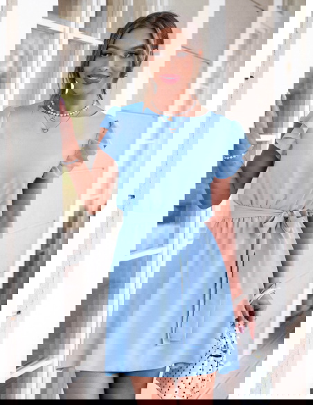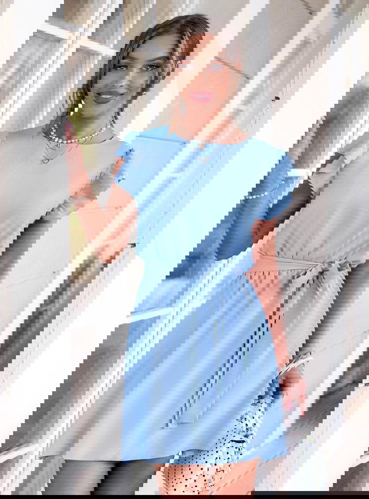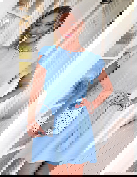 Błękitna sukienka z wiązaniem w talii Dalinda