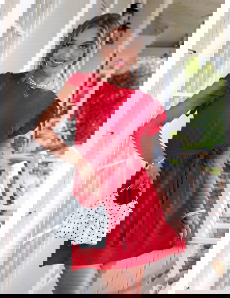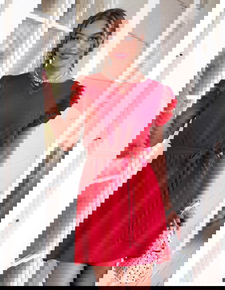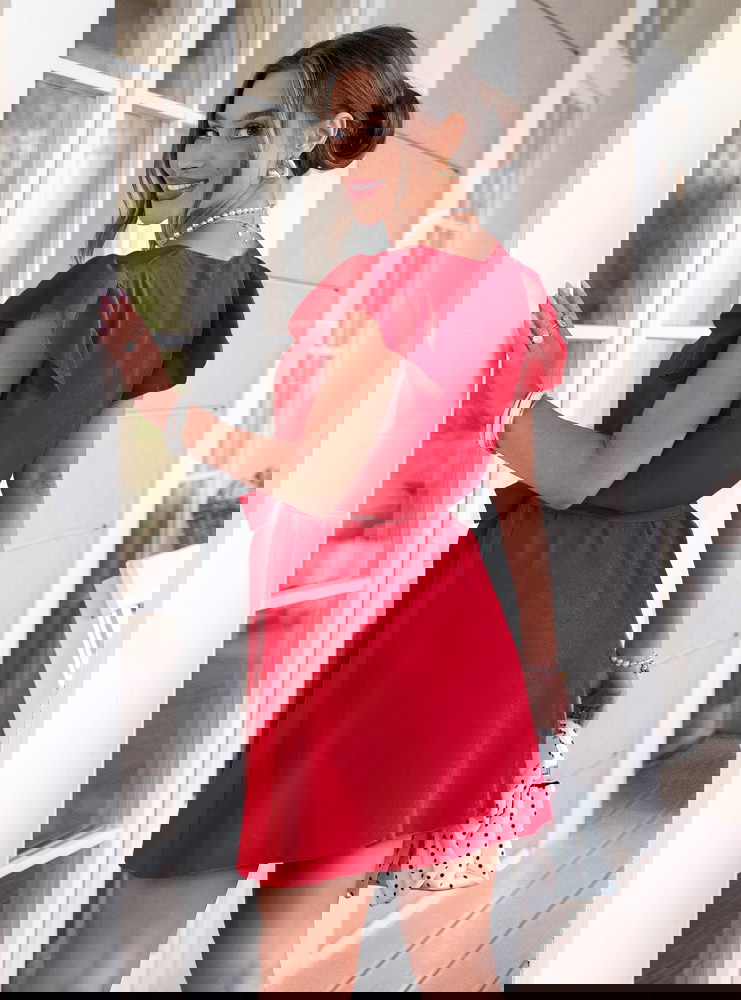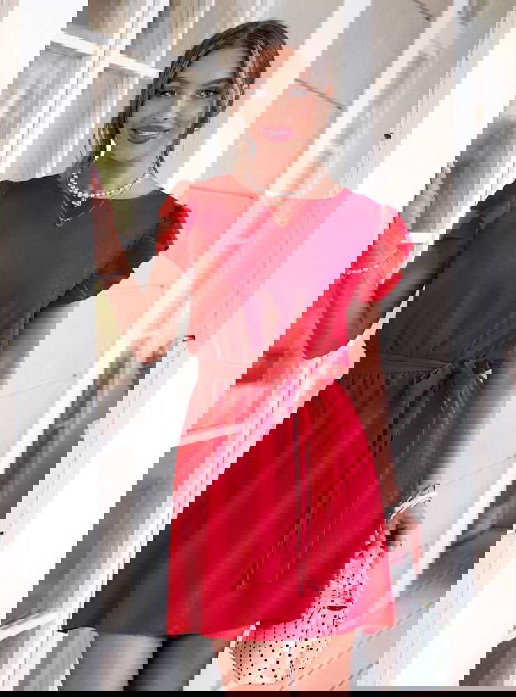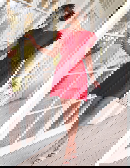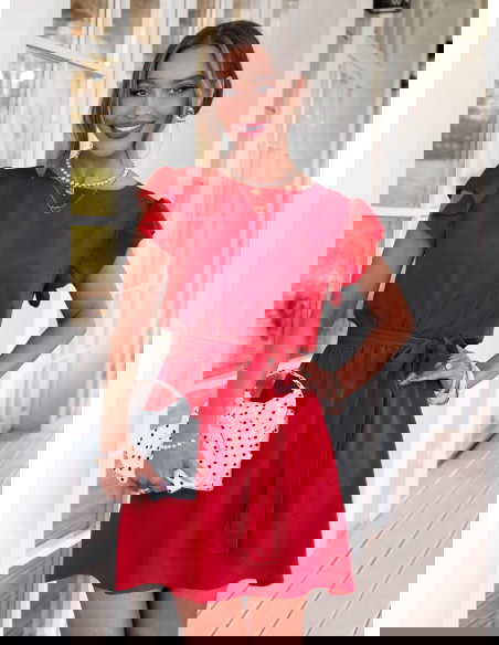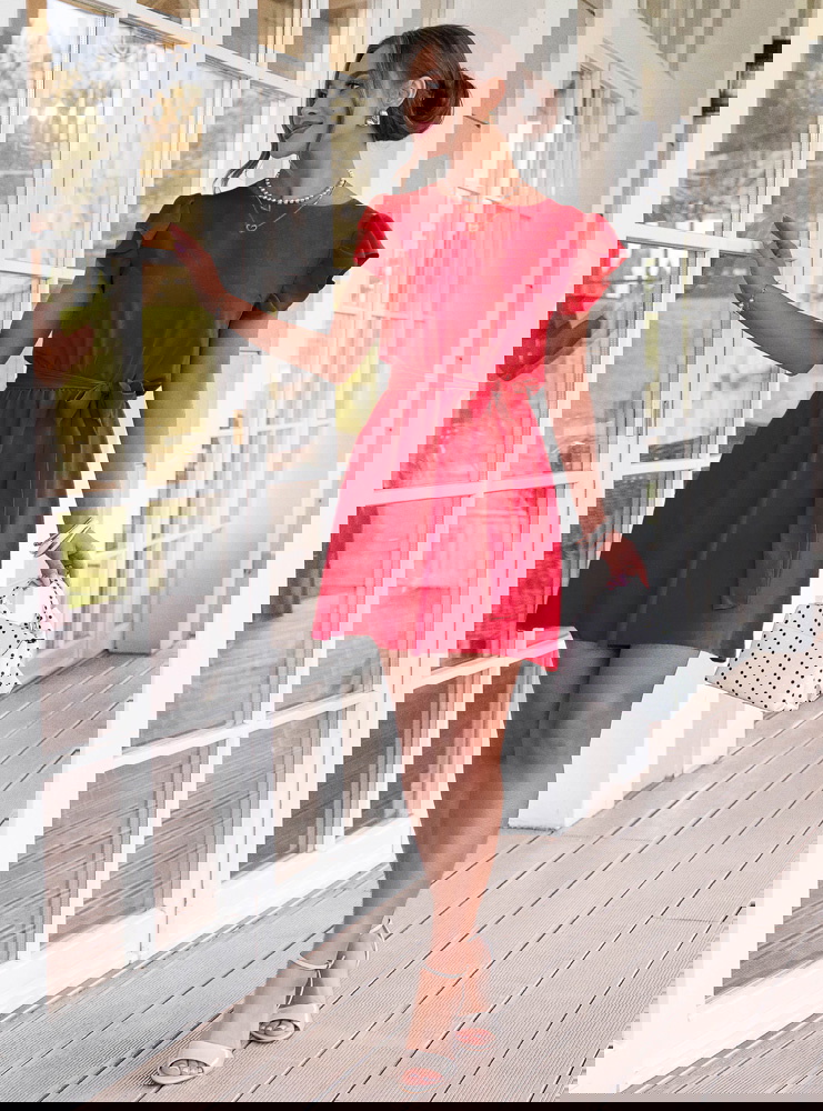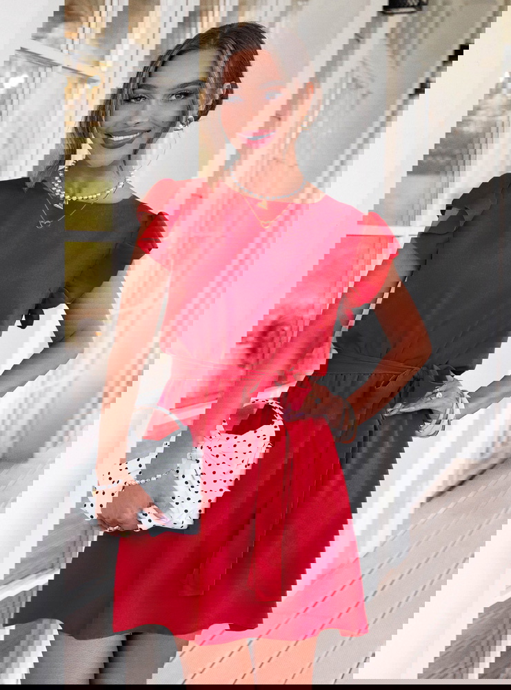 Malinowa sukienka z wiązaniem w talii...