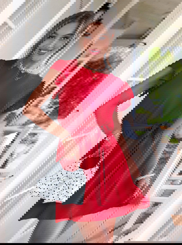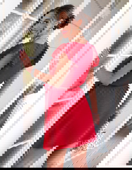 Malinowa sukienka z wiązaniem w talii Dalinda