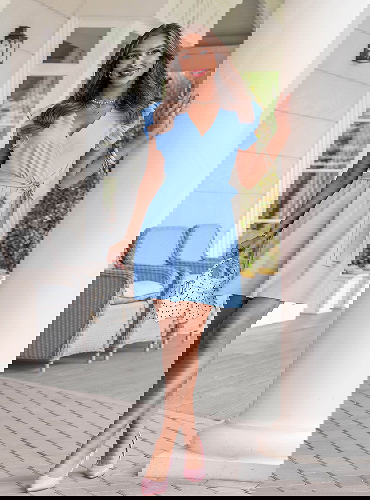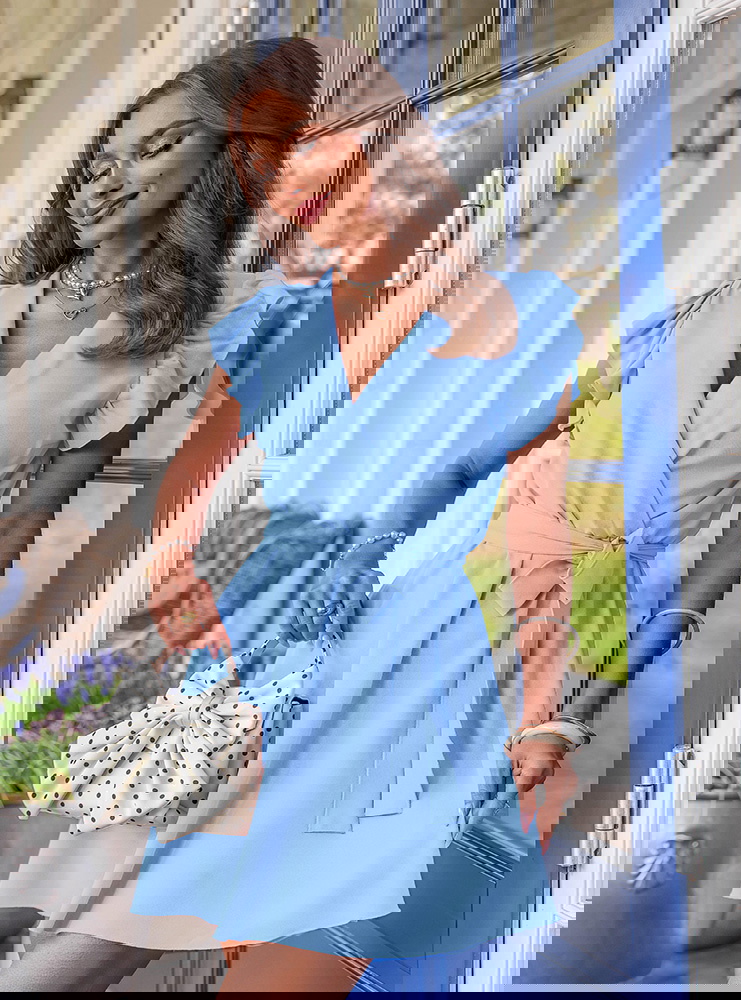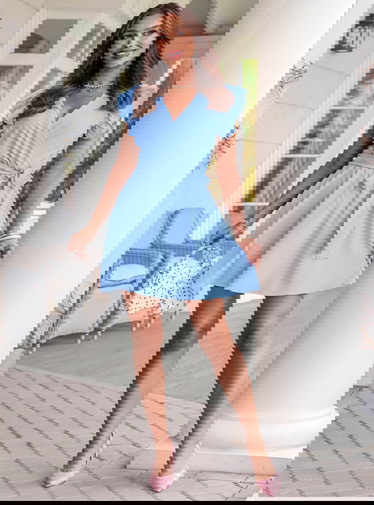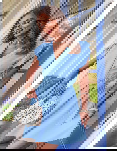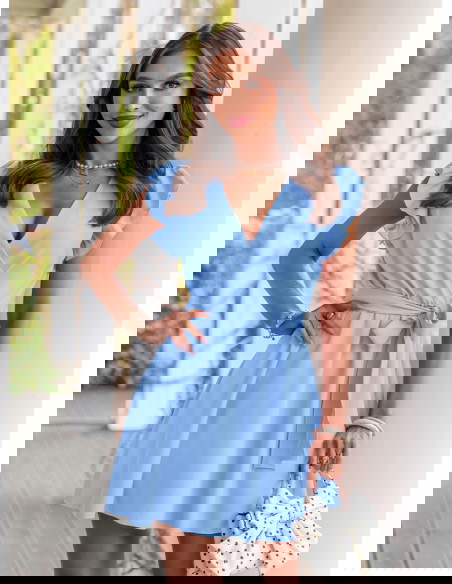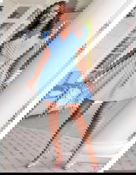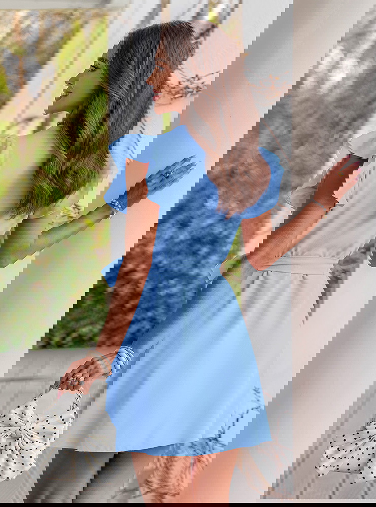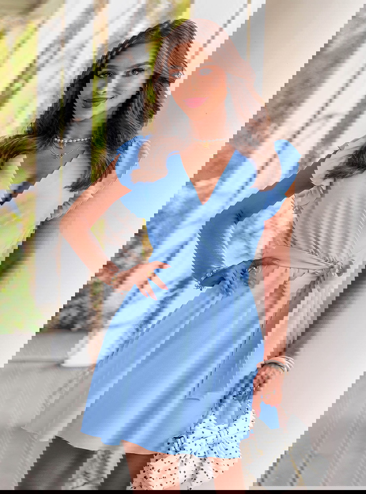 Błękitna sukienka z przekładanym dekoltem Alavellea