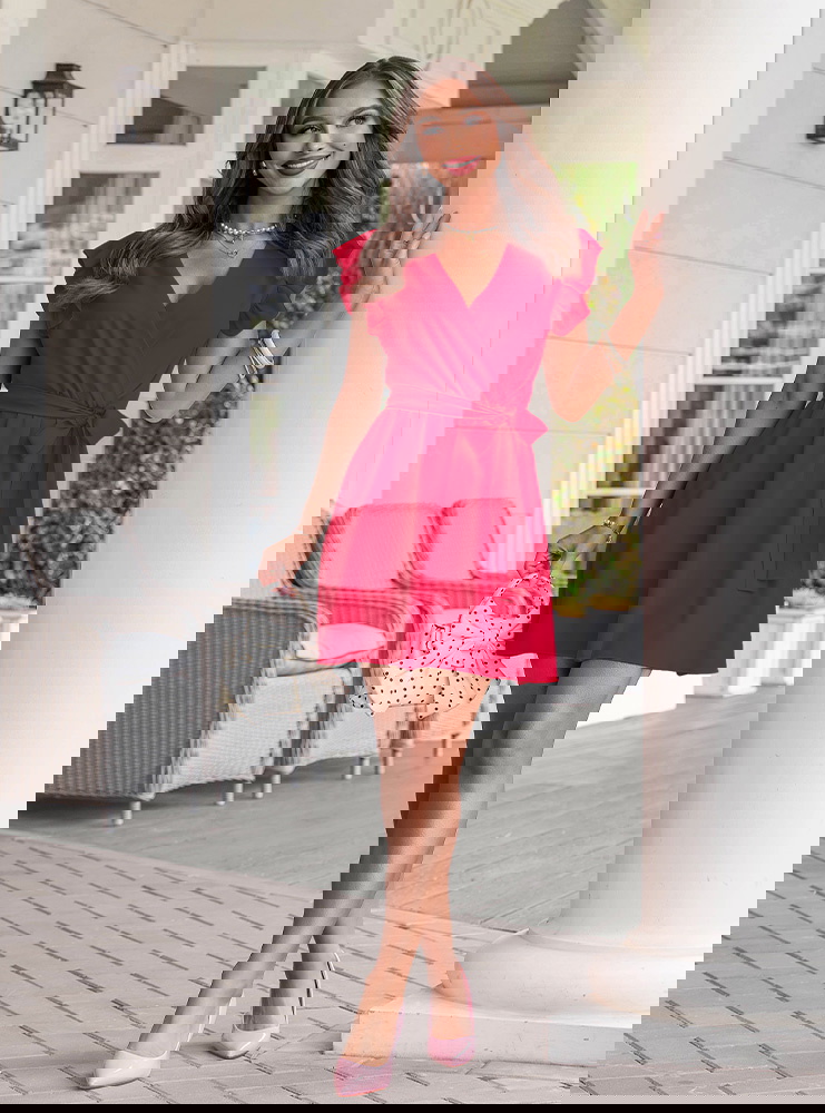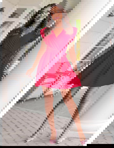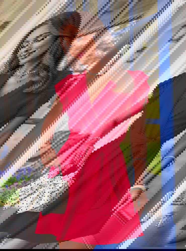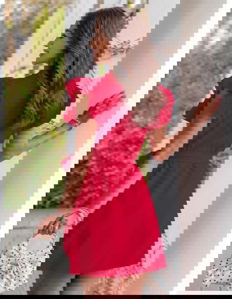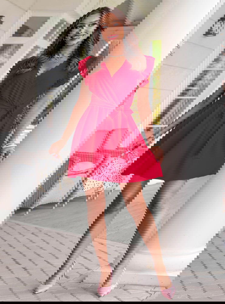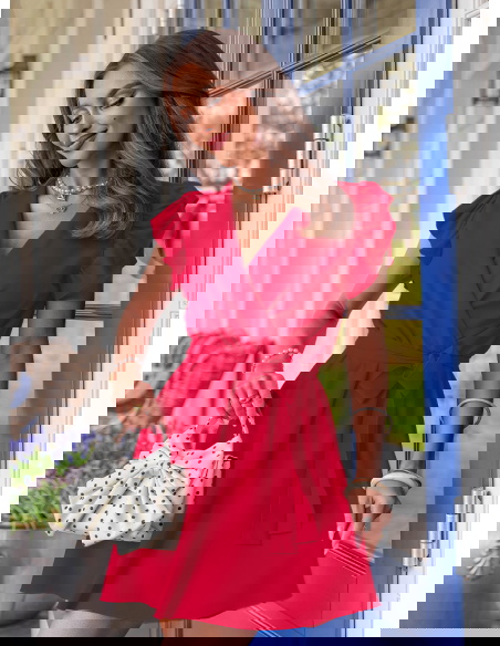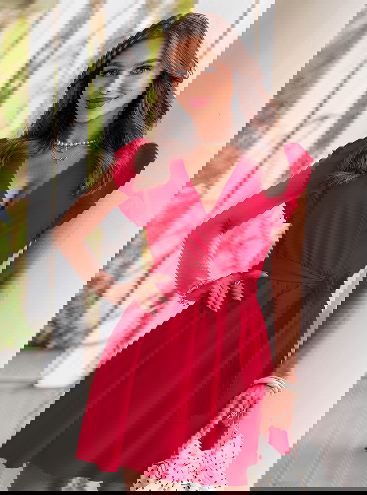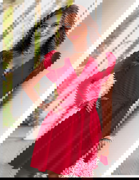 Malinowa sukienka z przekładanym dekoltem Alavellea