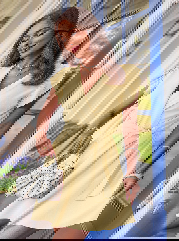 Sukienka z przekładanym dekoltem Alavellea - masełkowa