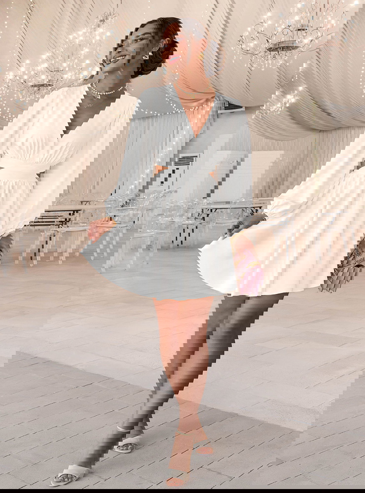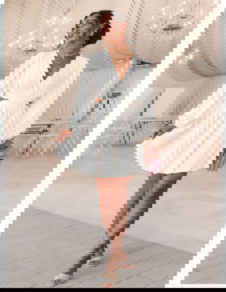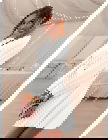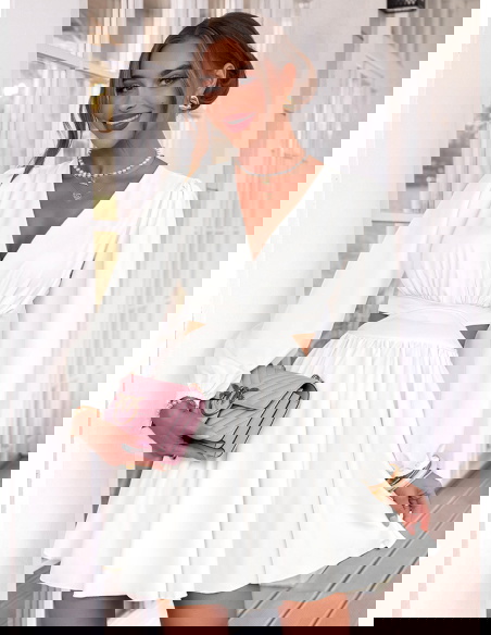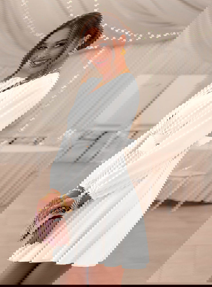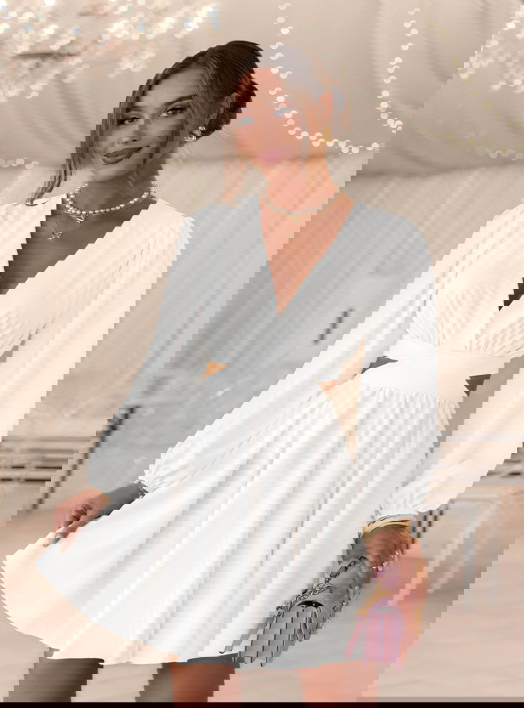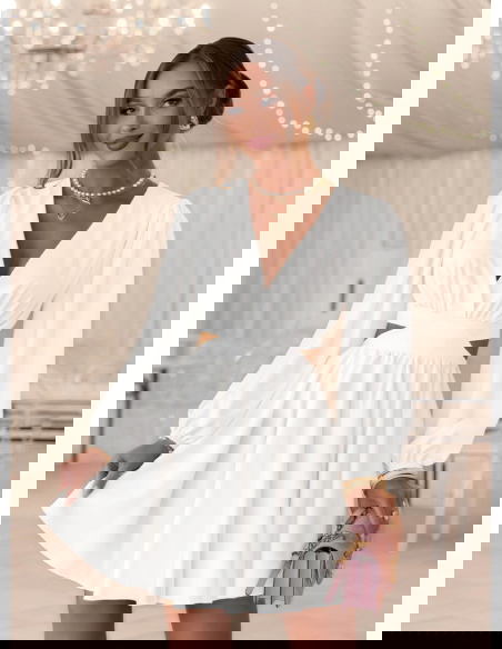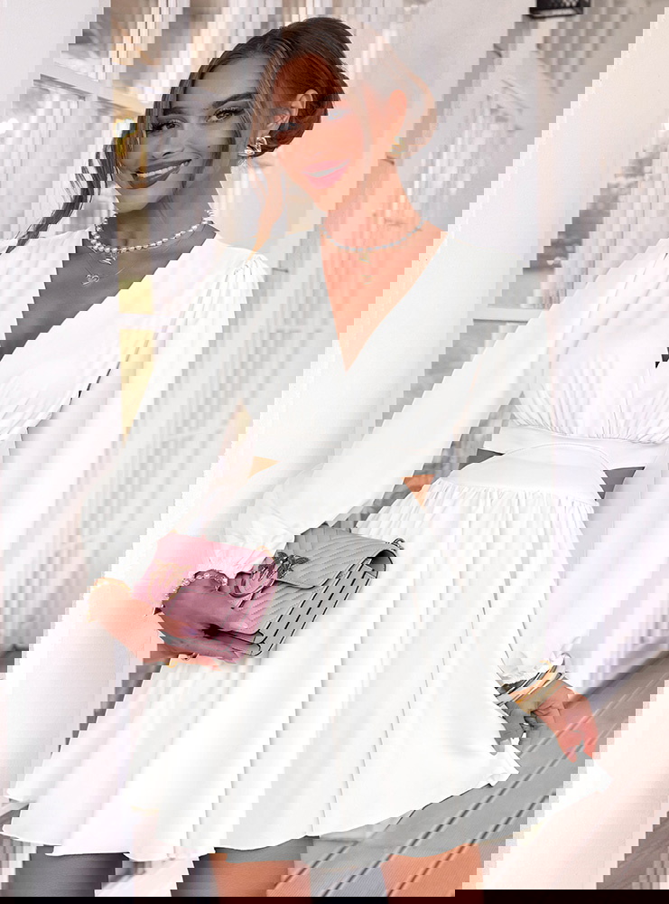 Biała sukienka rozkloszowana z wycięciem Avellora