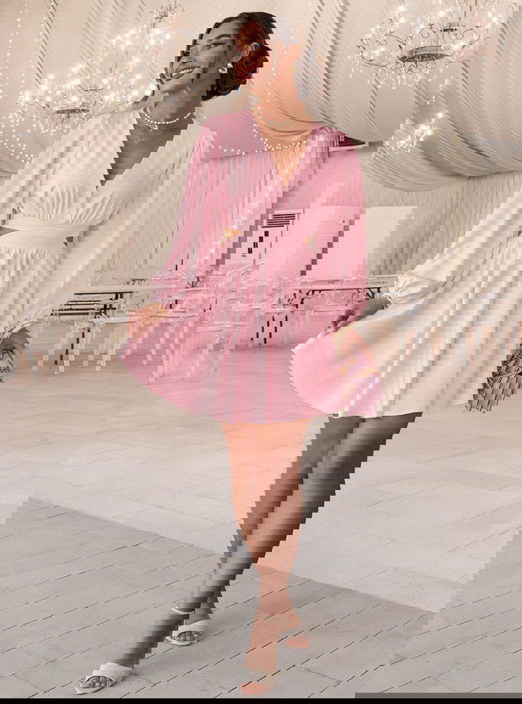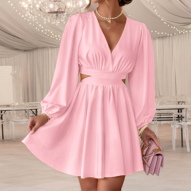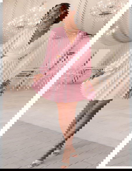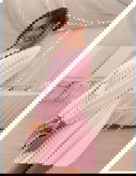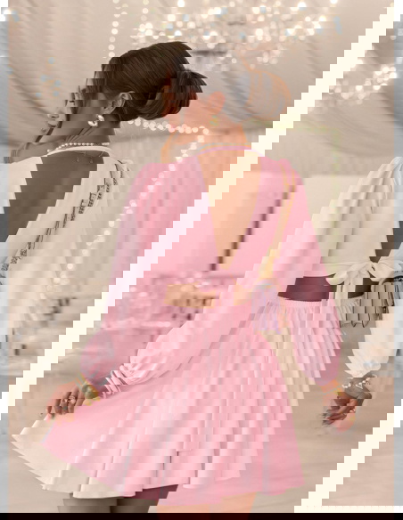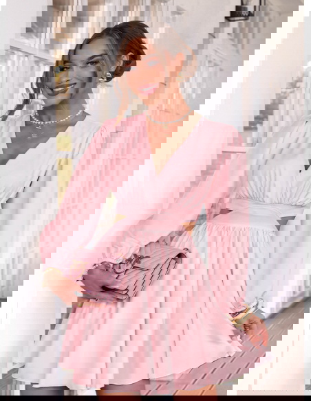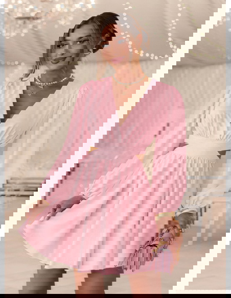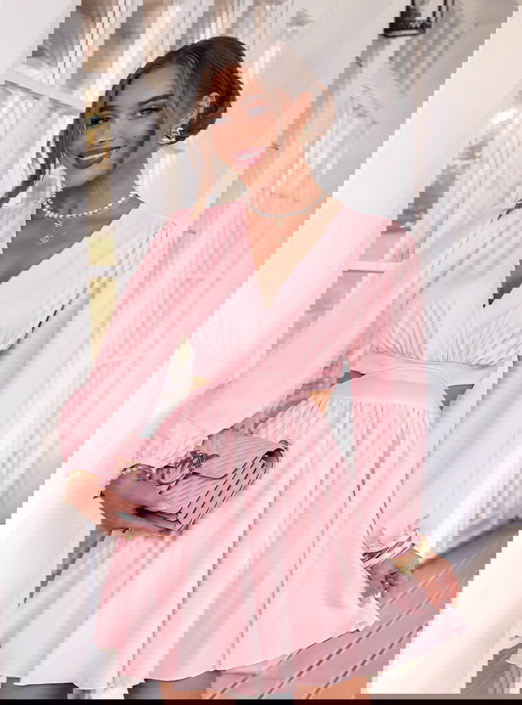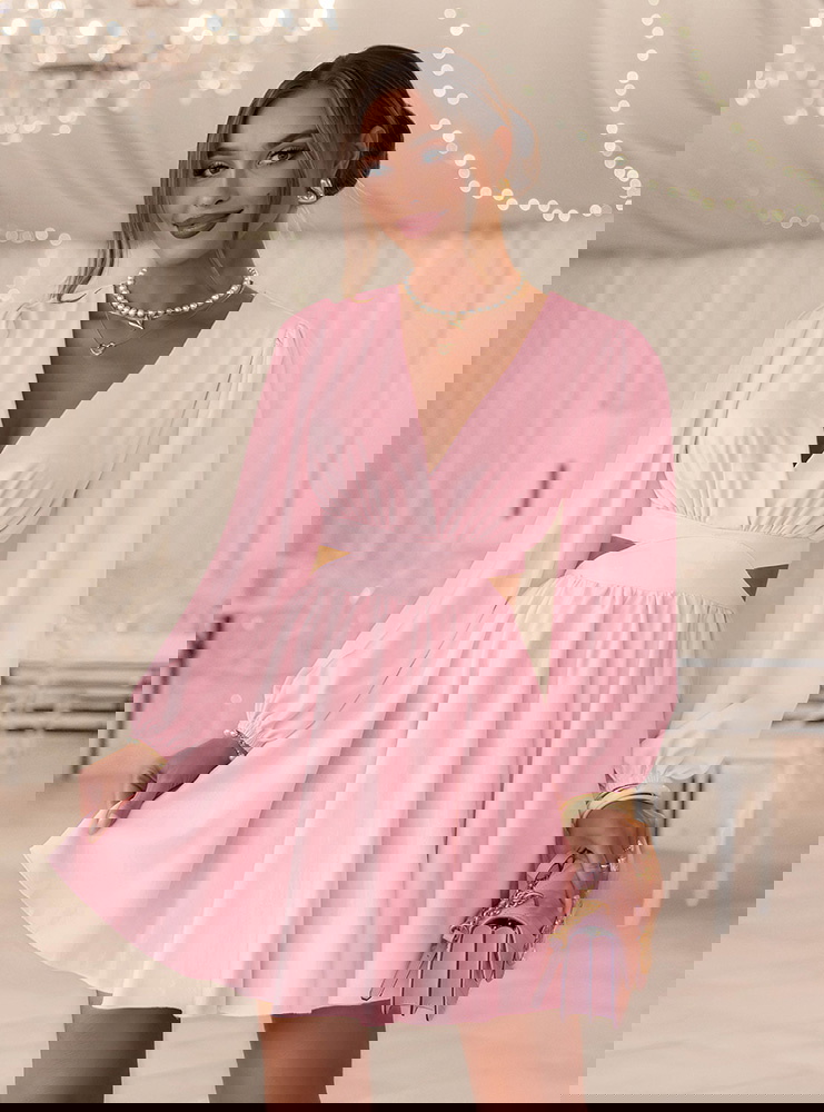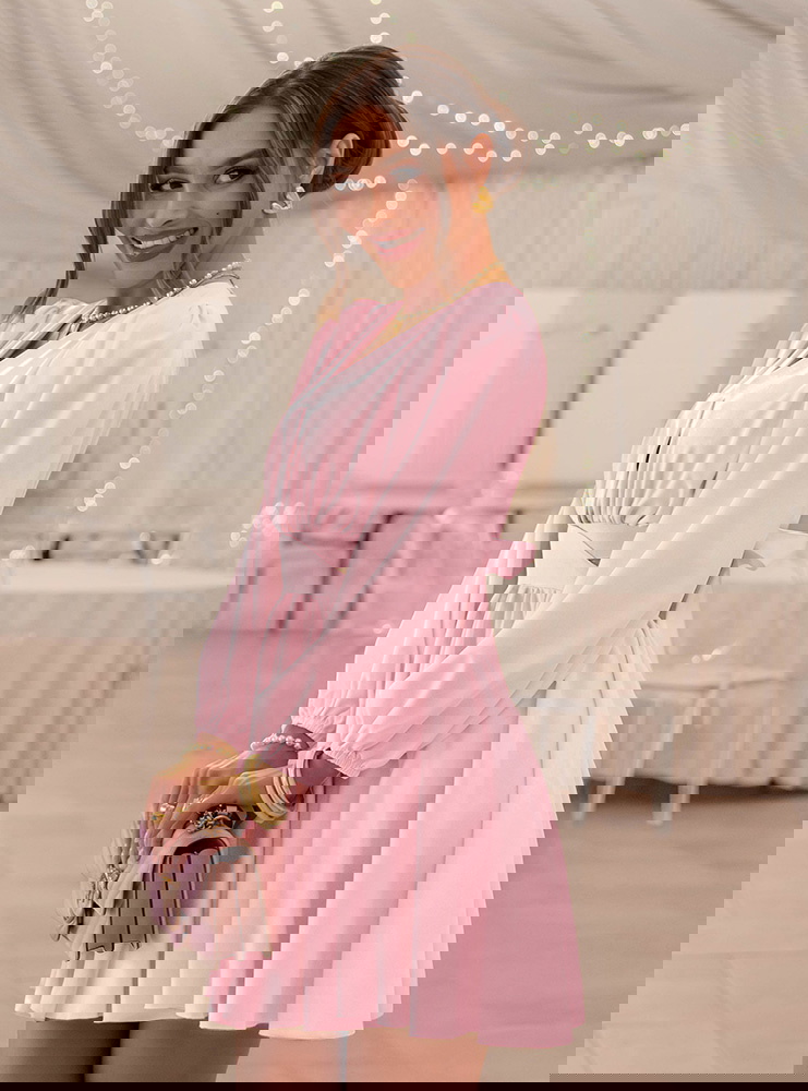 Pudrowa sukienka rozkloszowana z wycięciem Avellora