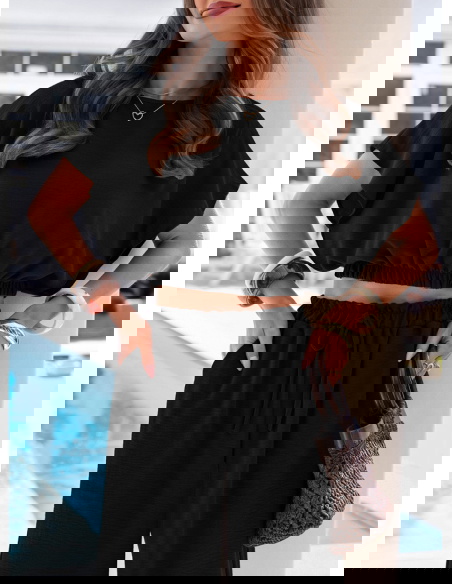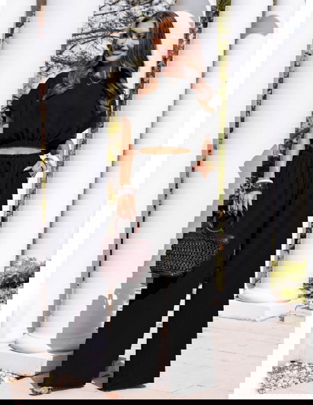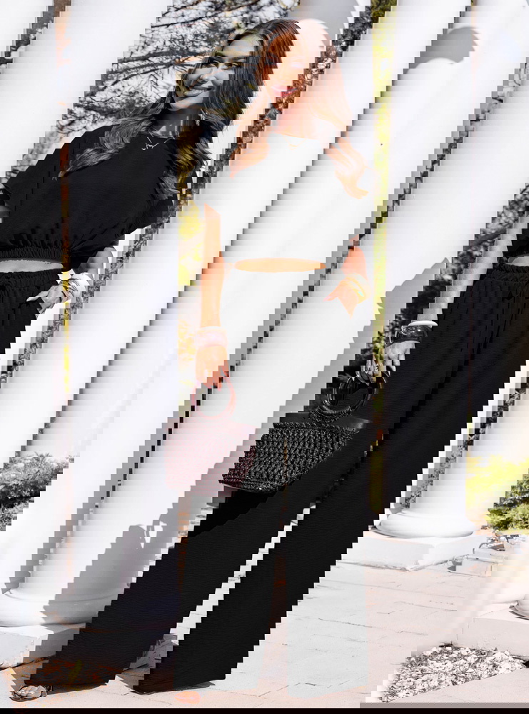 Czarny komplet bluzka i szerokie spodnie Lakisha