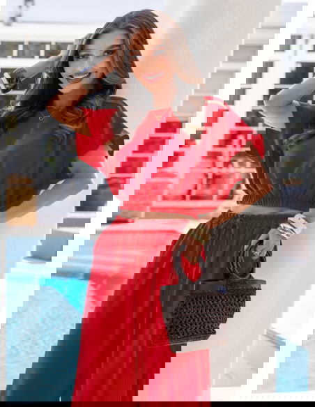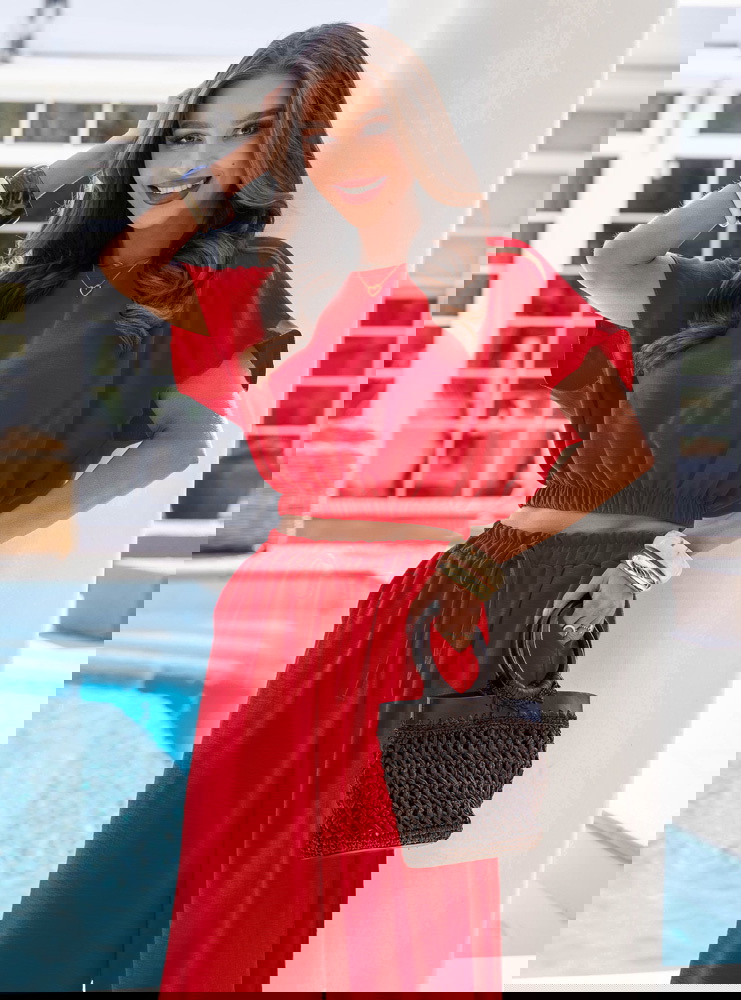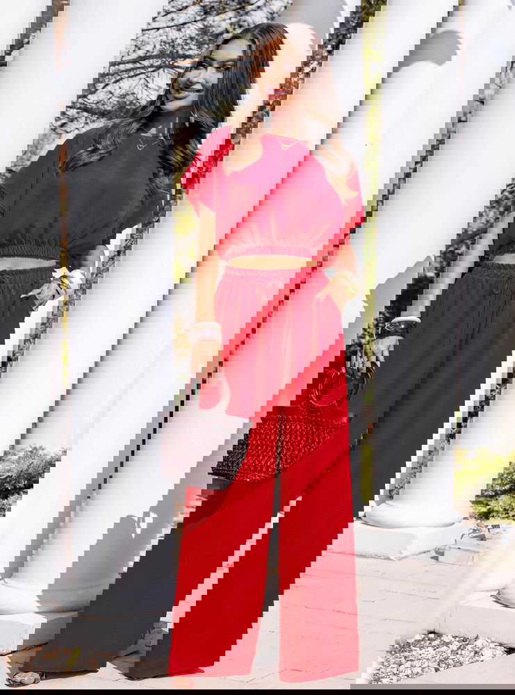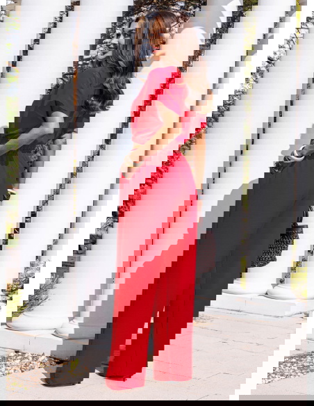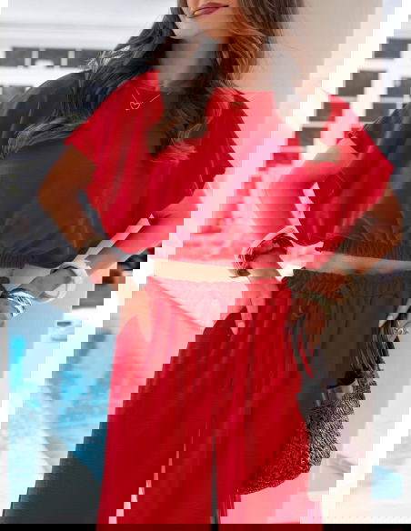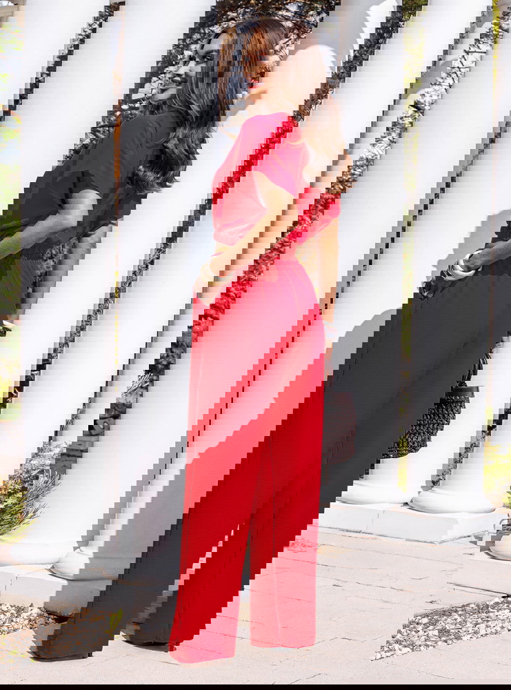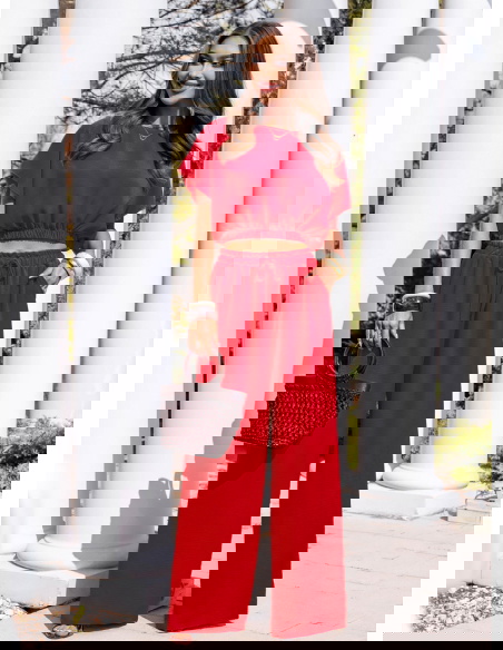 Malinowy komplet bluzka i szerokie spodnie Lakisha