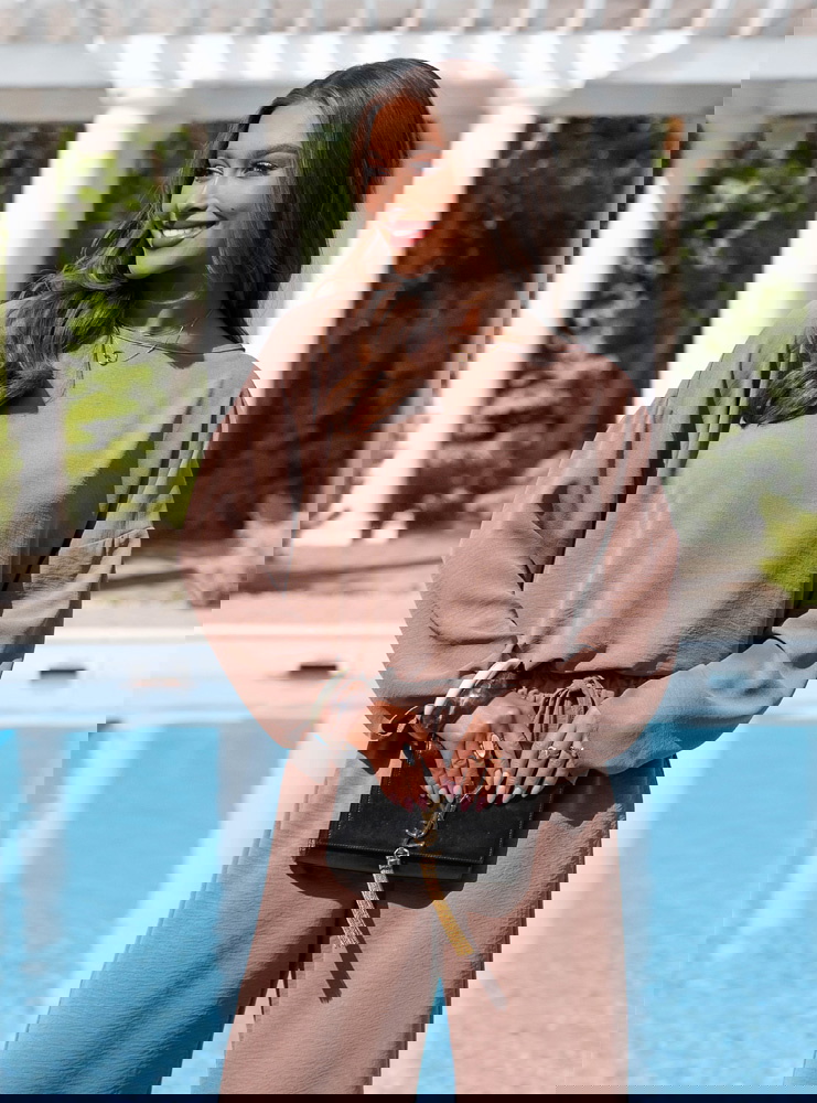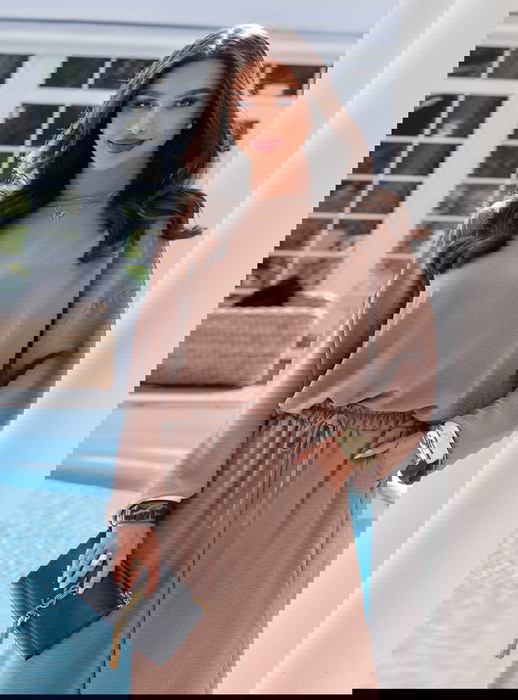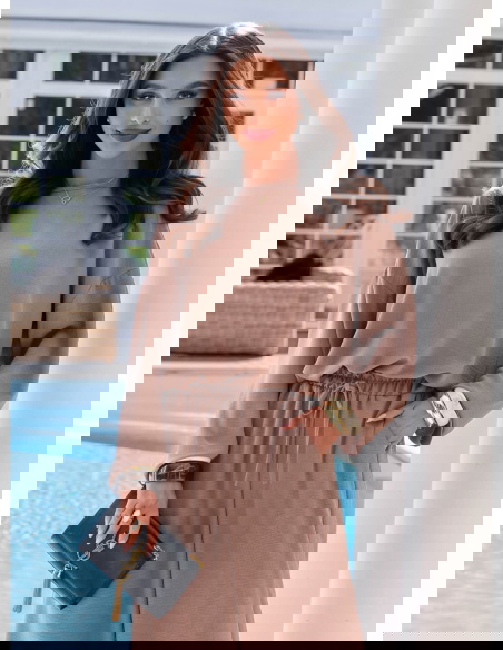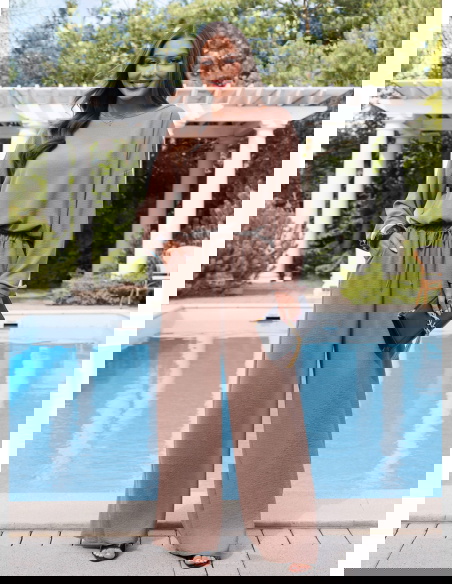 Komplet bluzka i spodnie Madelka - mocha mousse