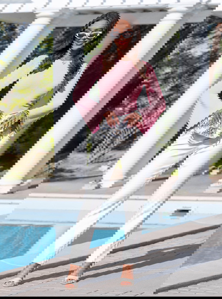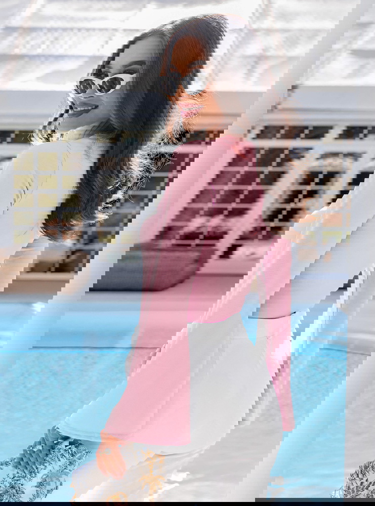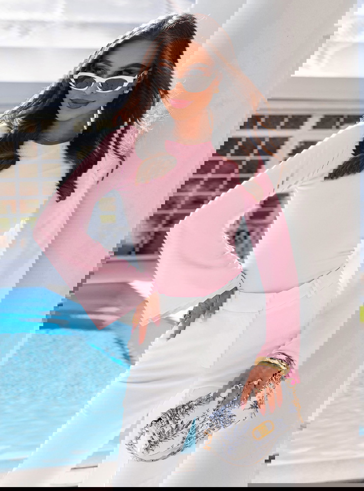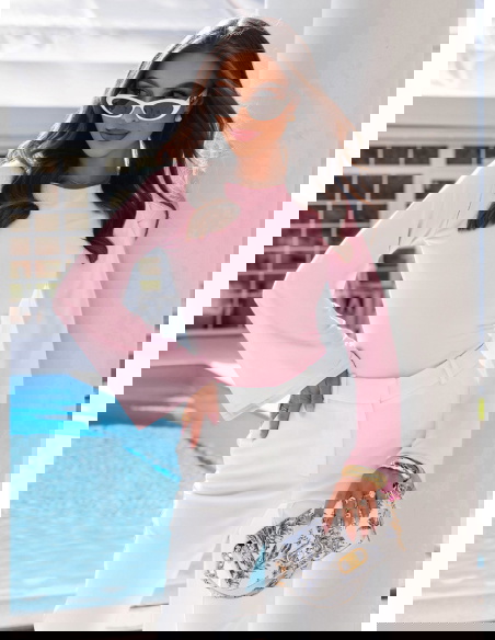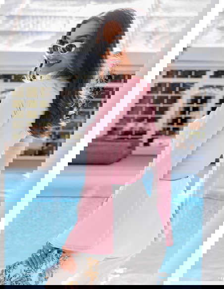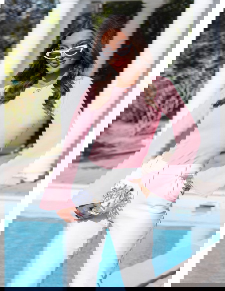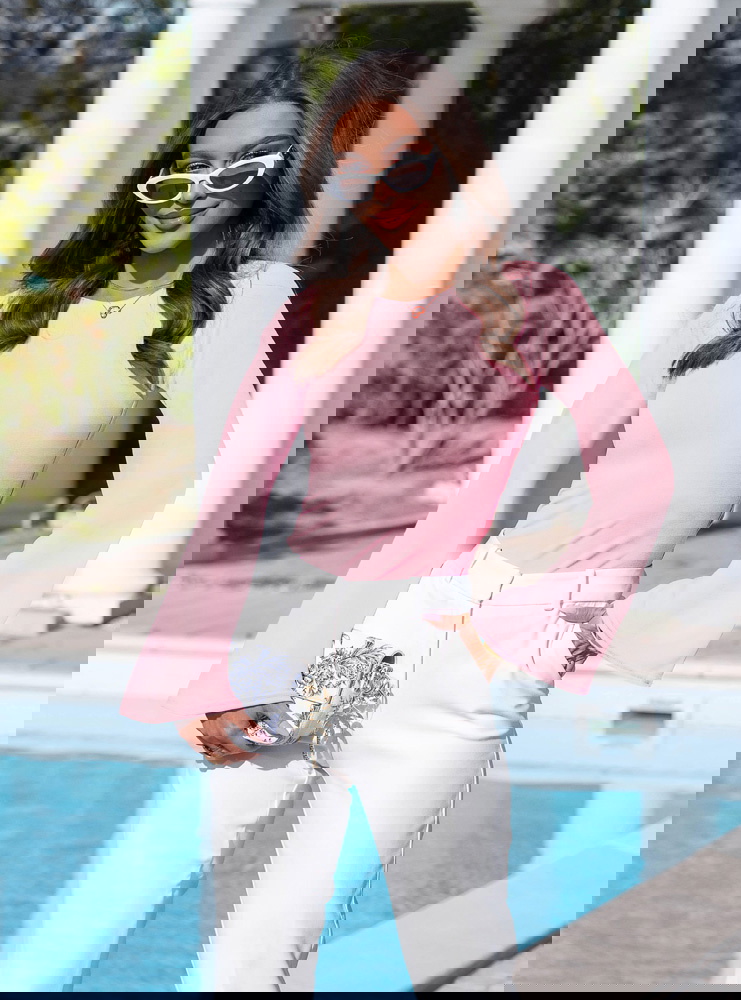 Pudrowa bluzka z szerokimi rękawami Lyonette