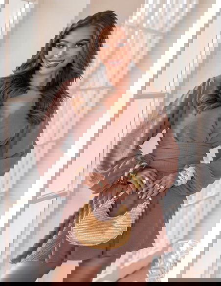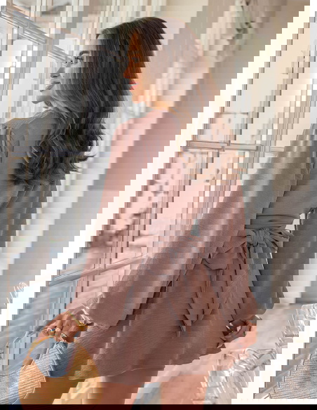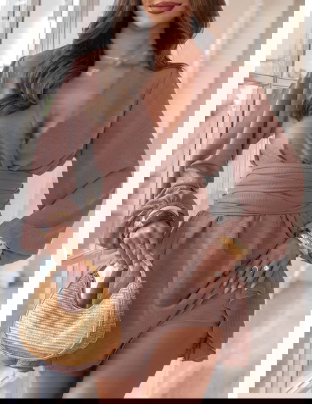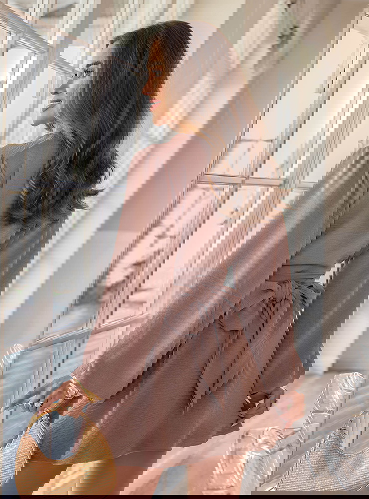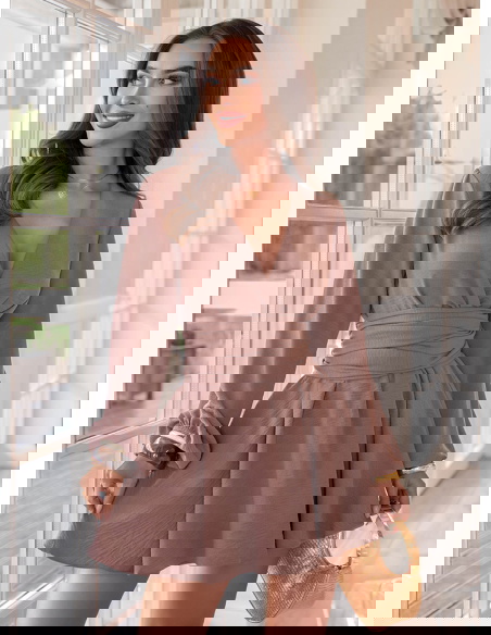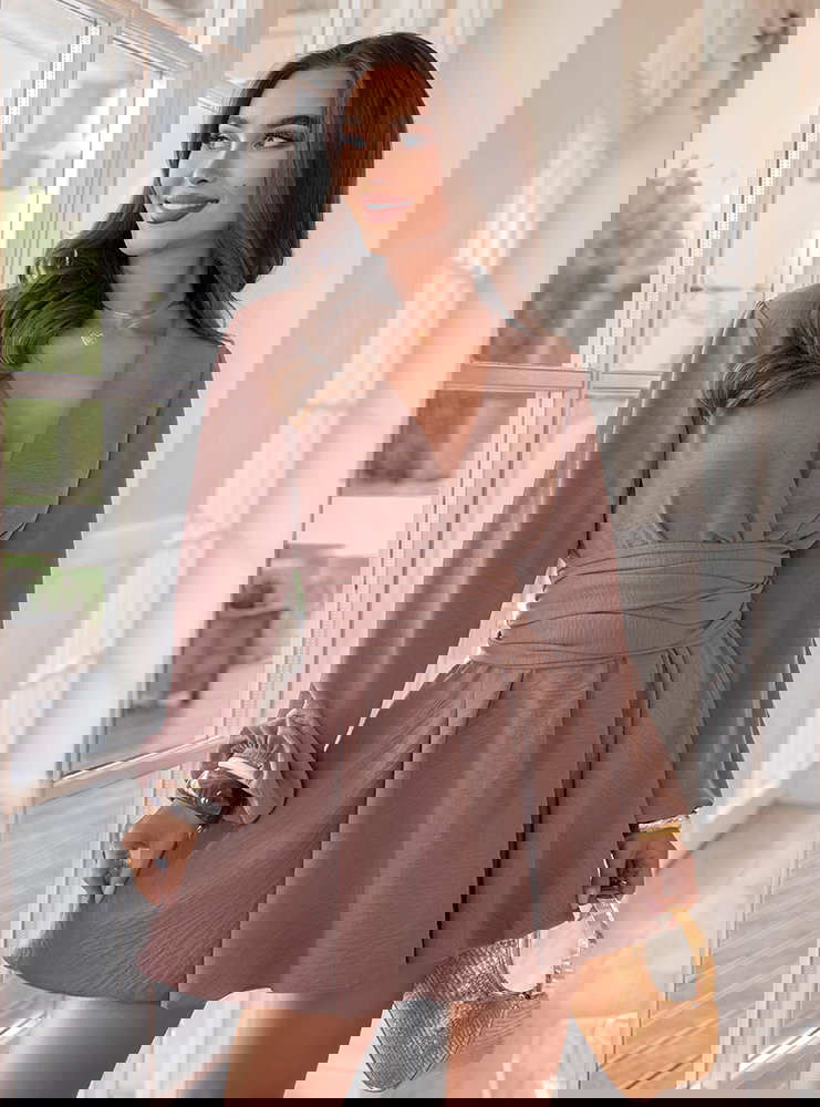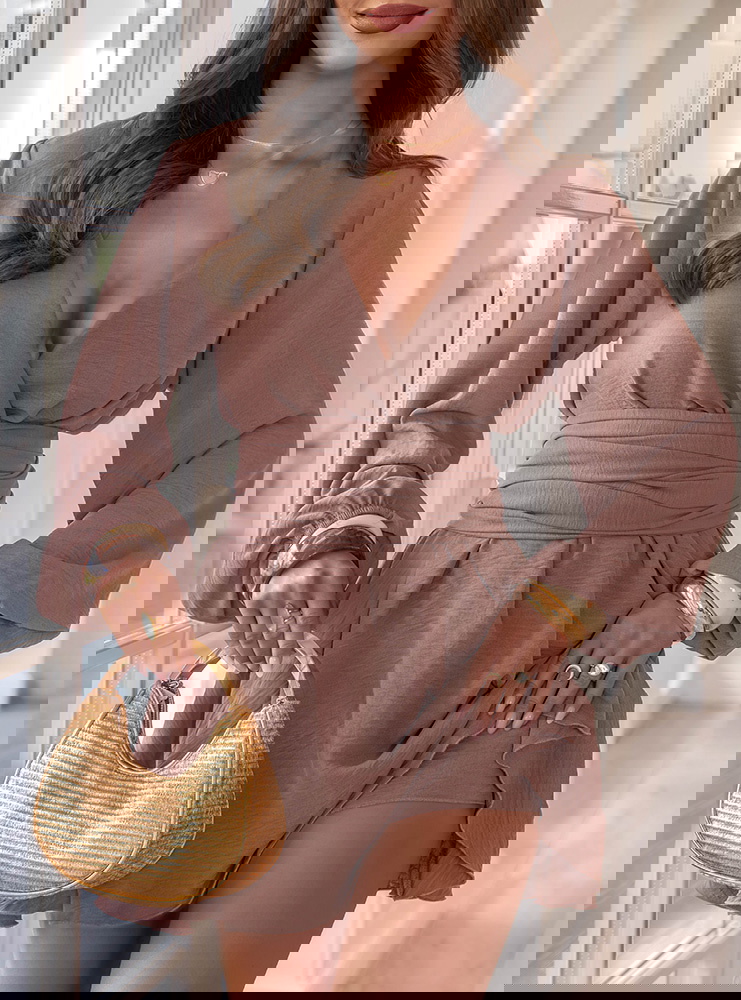 Kombinezon jak sukienka z bufiastymi rękawami Vivienna - mocha mousse