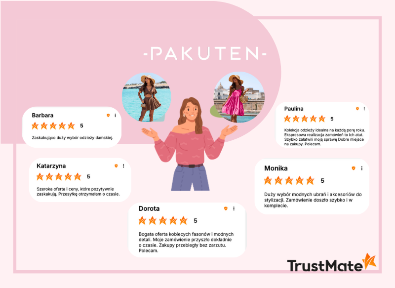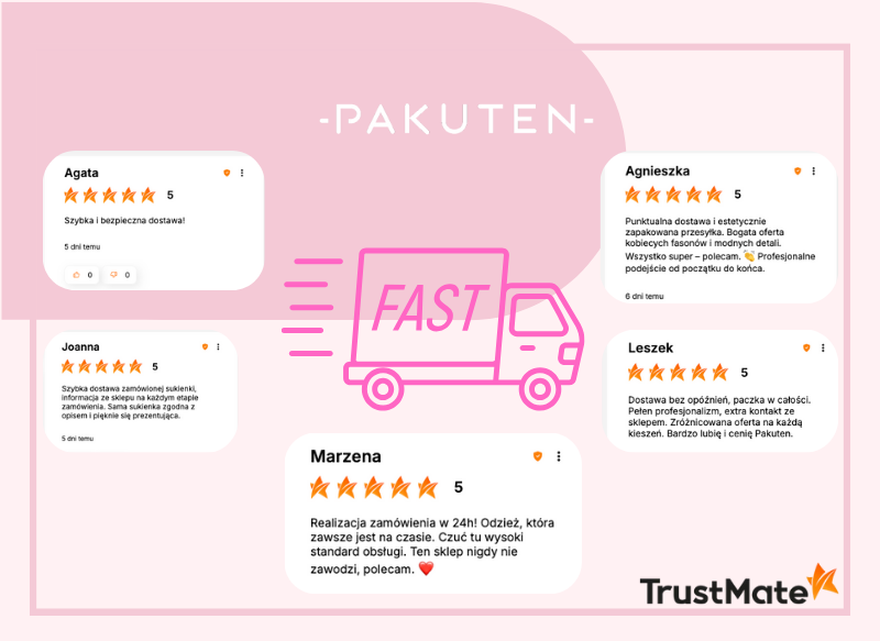 Dodatkowo oferujemy niskie ceny, które idą w parze z modnym wyglądem i jakością wykonania. Klientki doceniają, że w Pakuten można kupić więcej, płacąc mniej. To jedna z najczęściej wymienianych zalet w komentarzach na TrustMate.